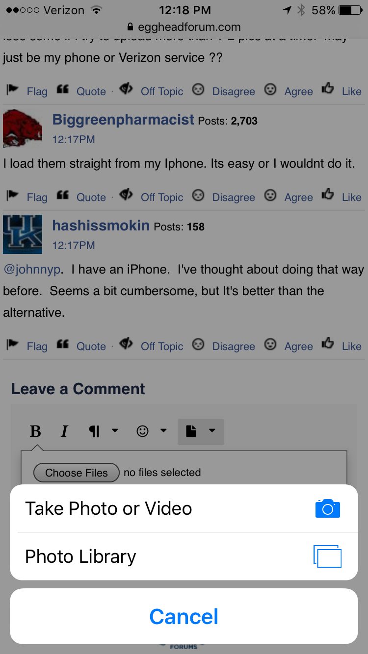 My iphone is very slow at uploading pics to the forum. I usually lose some if I try to upload more than 1-2 pics at a time. May just be my phone or Verizon service ??