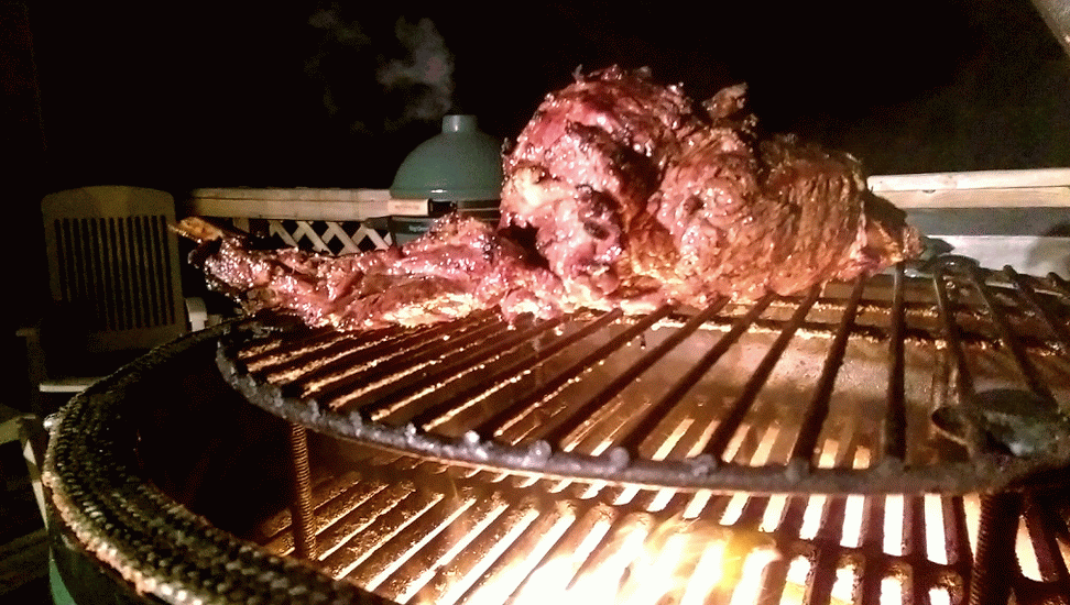 I did prep outside on the egg/prep table. Here's mine. Turned out excellent. I'll do it again with the mindset of smashing it for an even wider surface area. The bones should be frenched (presentation only) and shield with foil if you so desire.