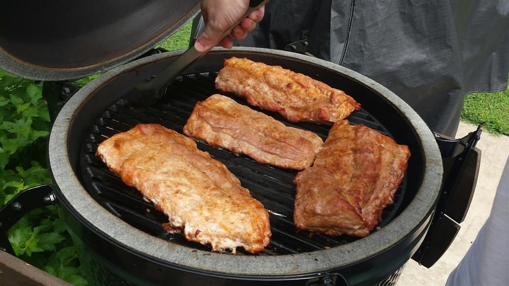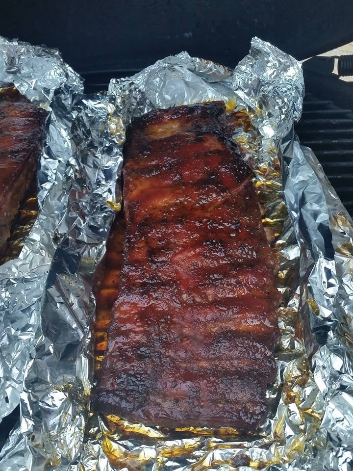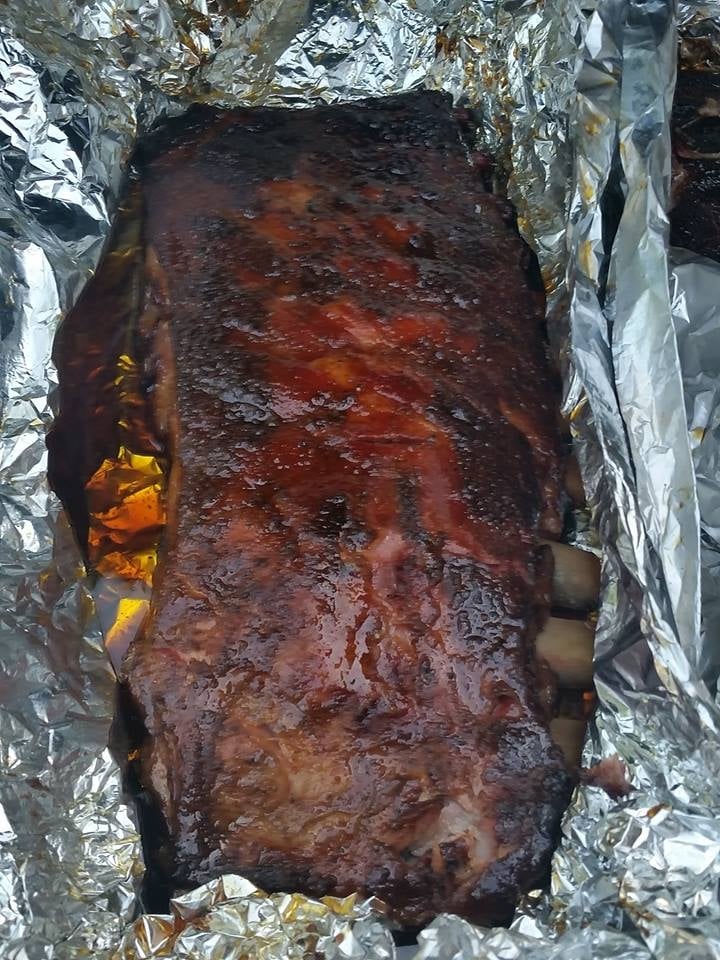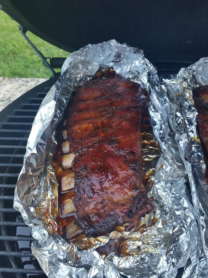 First time we've cooked ribs on the egg, and first time participating in a throwdown! Thank you for doing this, DoubleEgger!! Sorry if I'm not doing something correctly . . .