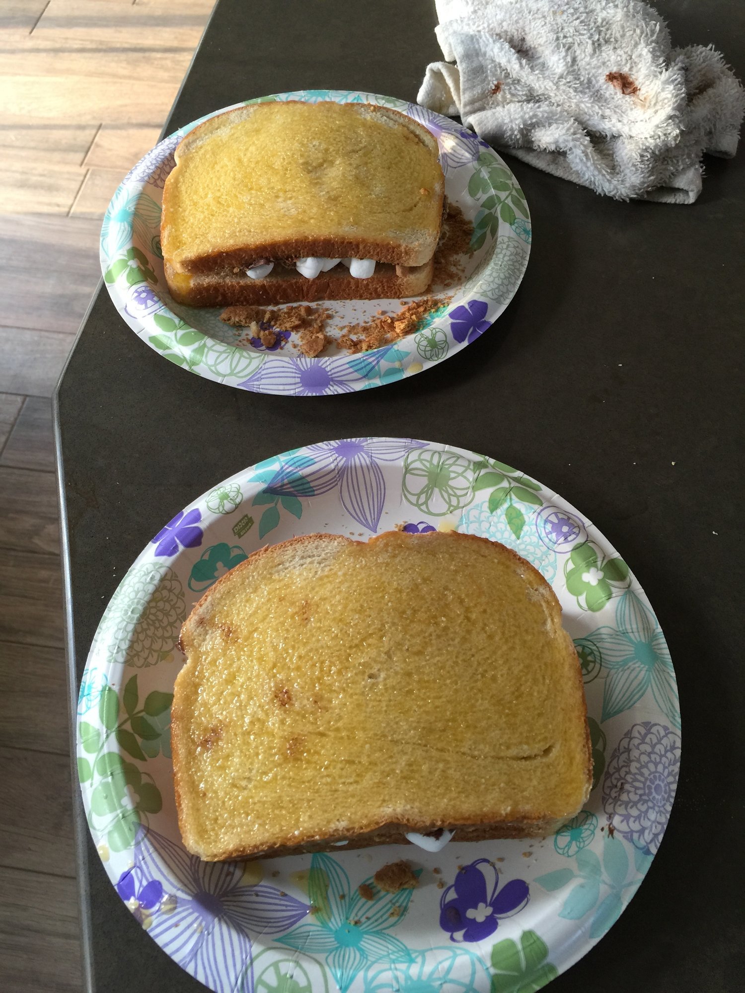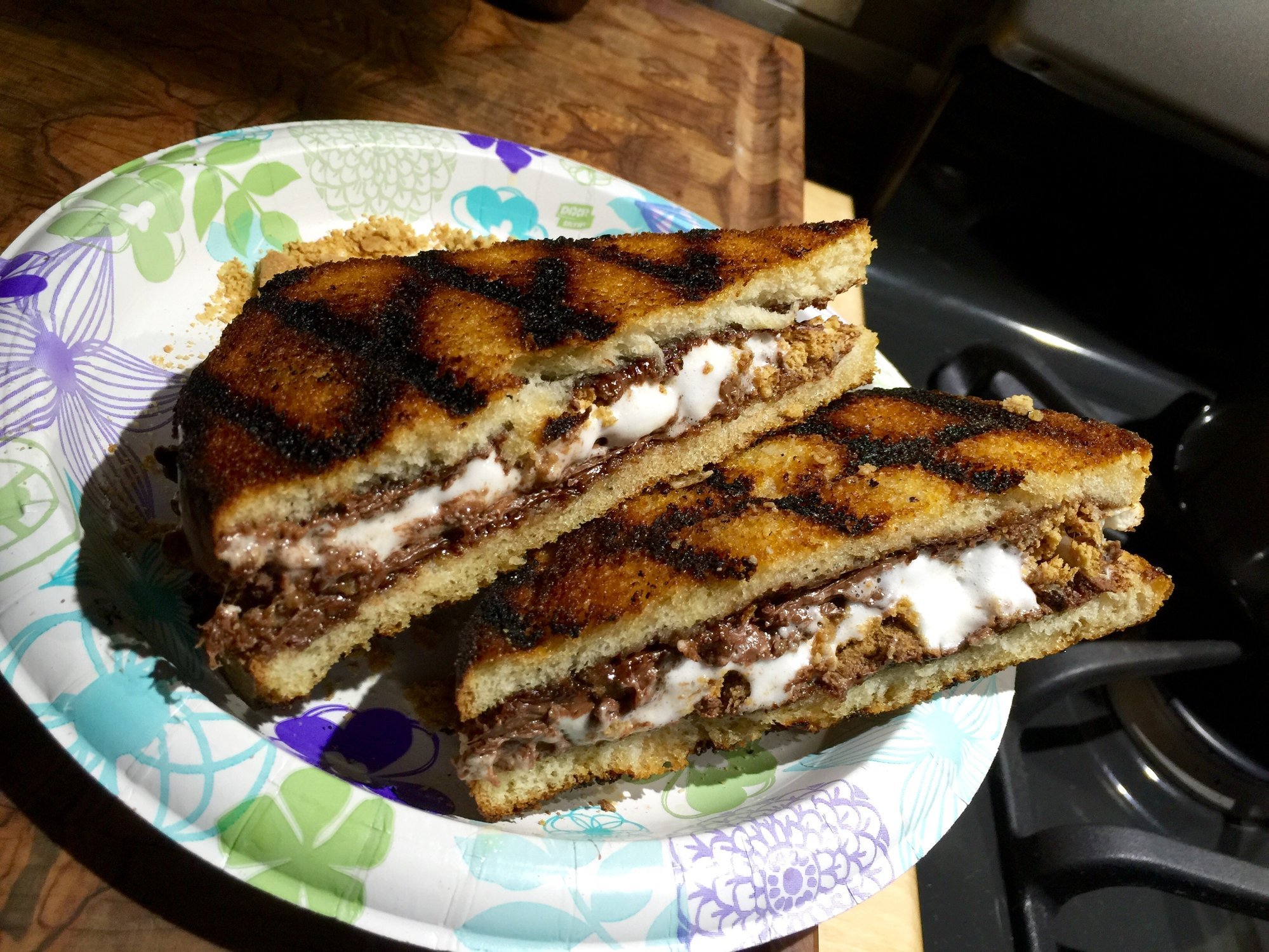 Cooked a lot tonight. 2 ha hinging tenders for apps, and tri tip for sandwiches, and more smores sandwiches. Also made my wife a grilled PB&J. On the couch now enjoying the AC.