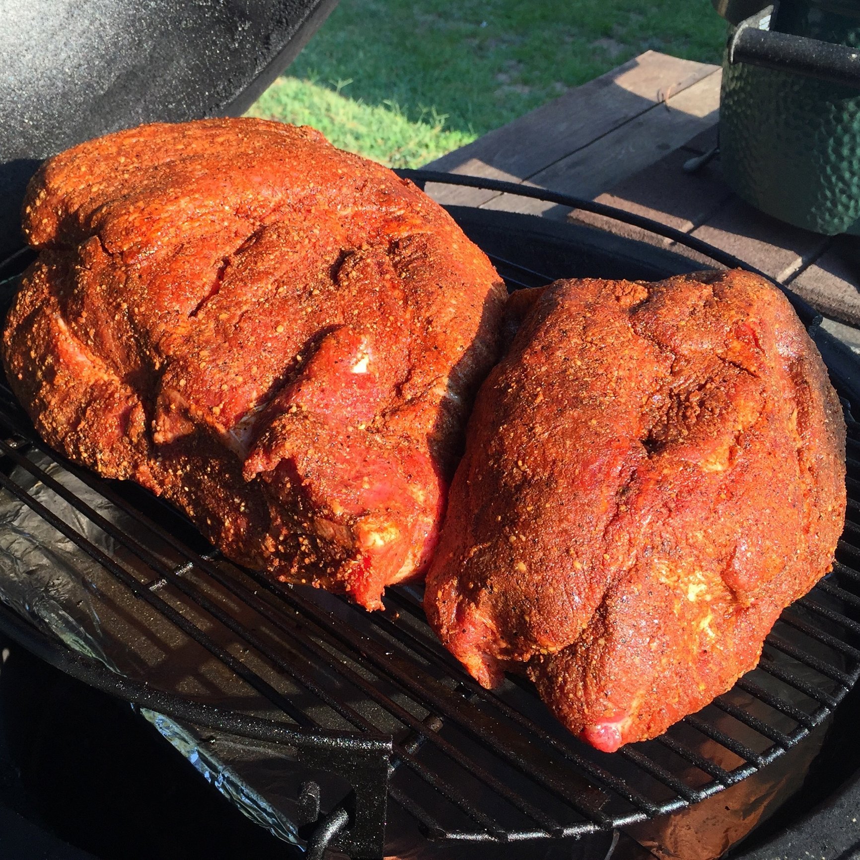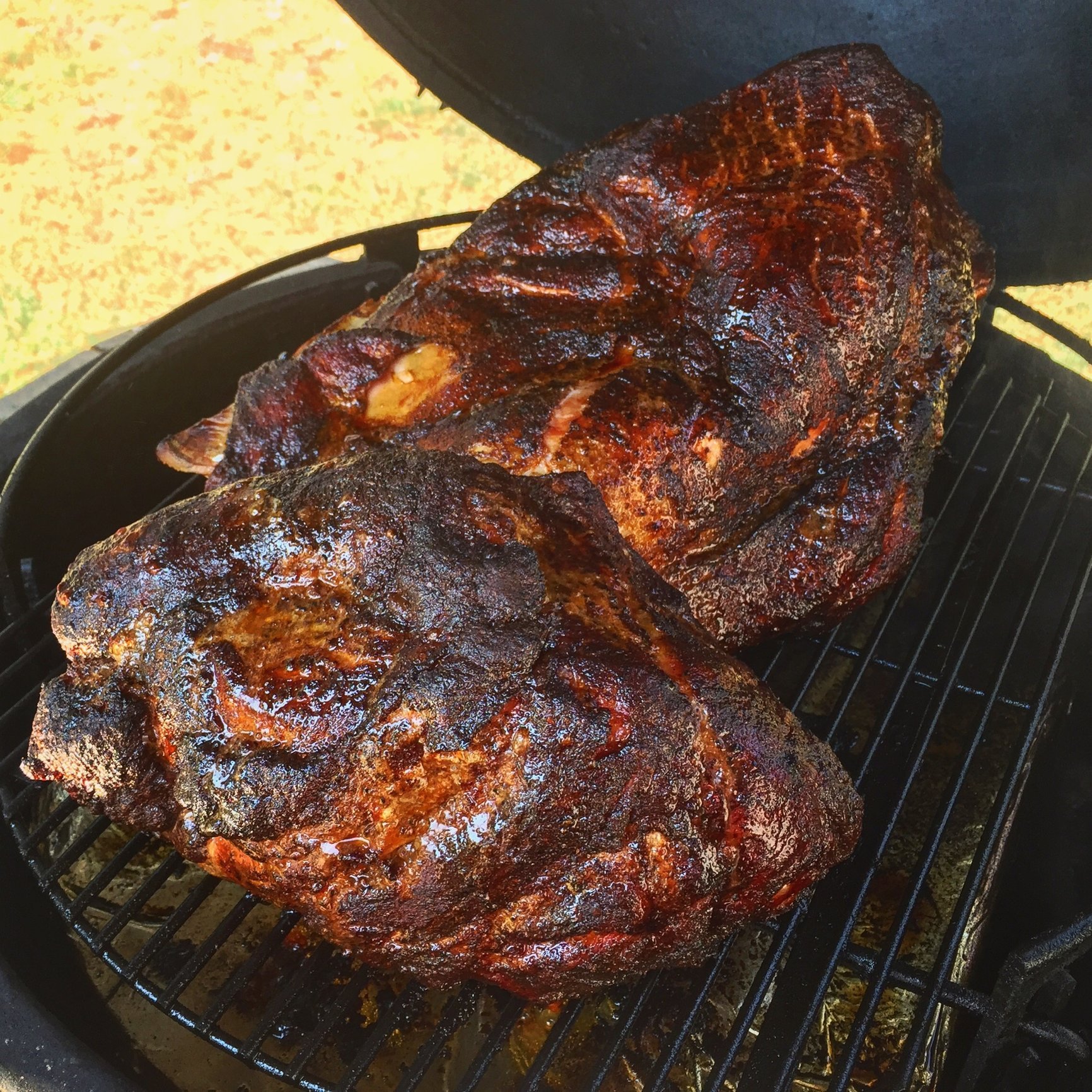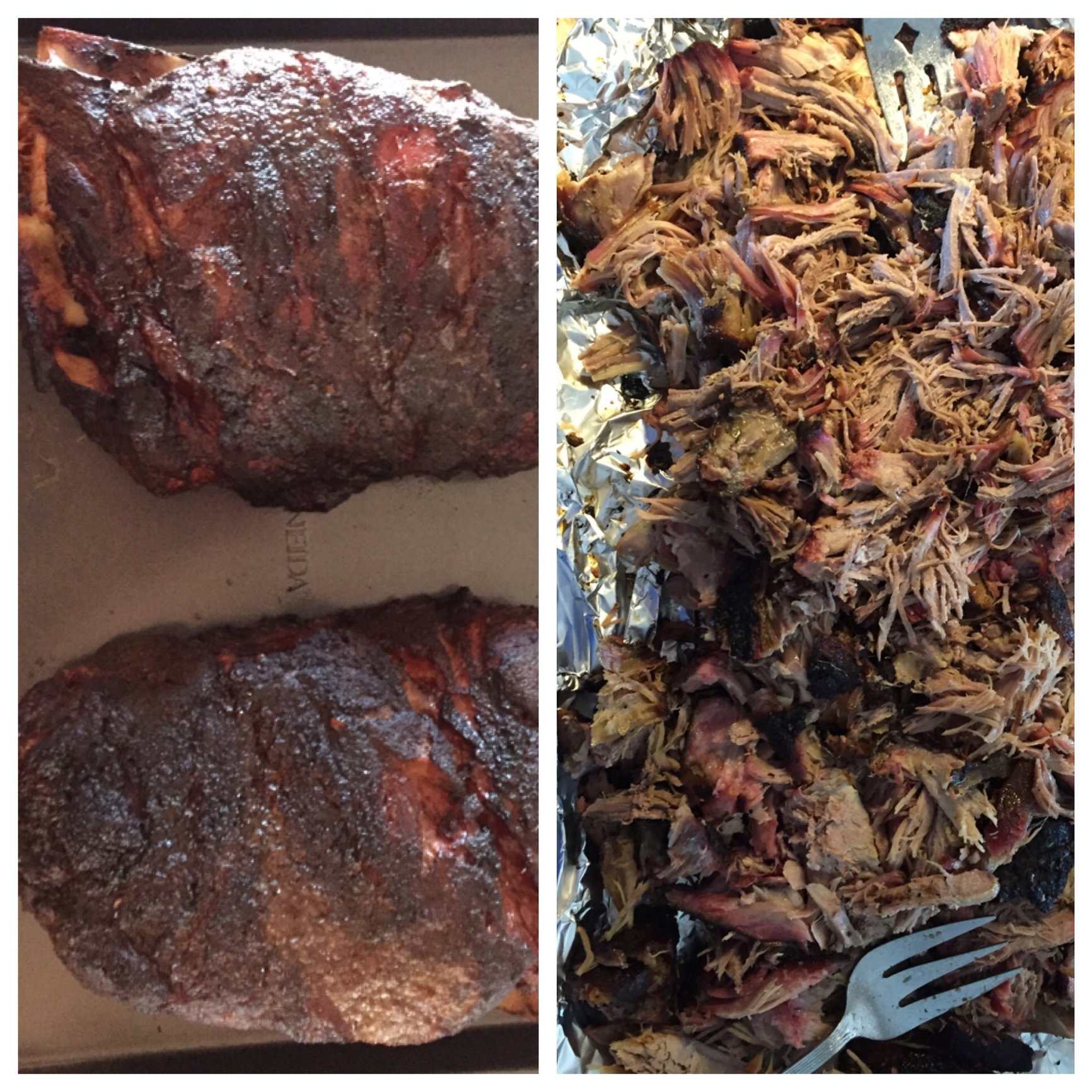 I had to bump the heat up after lunch to help push it through the stall. Cooked to an internal temp of 200. It was finished just in time and was enjoyed by all. Everything pulled apart nicely.