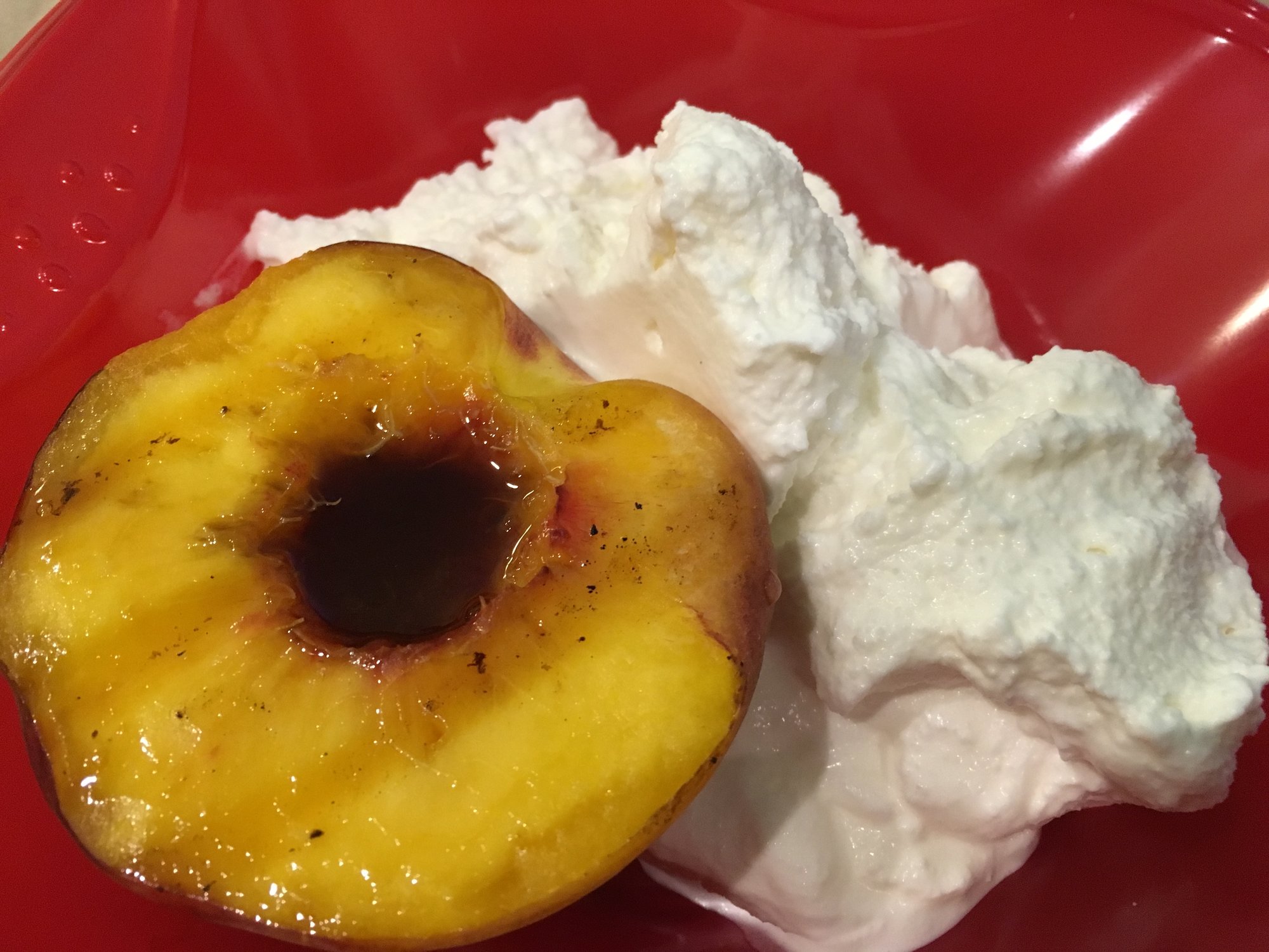 Saw this idea in a desert thread and had to try it. Grilled peaches, putting dark rum and brown sugar all over the top. Served with home made vanilla ice cream. Stellar.
