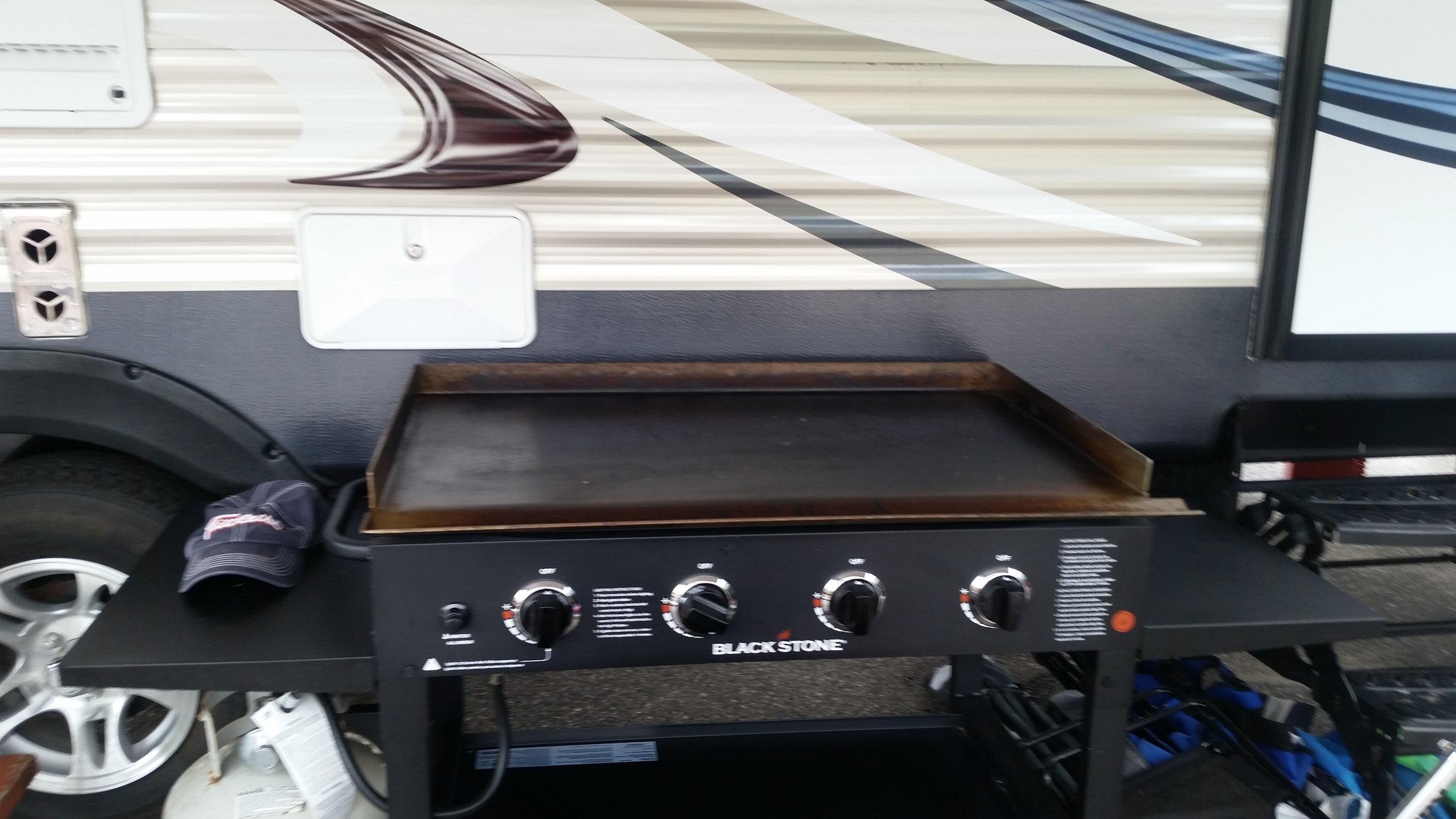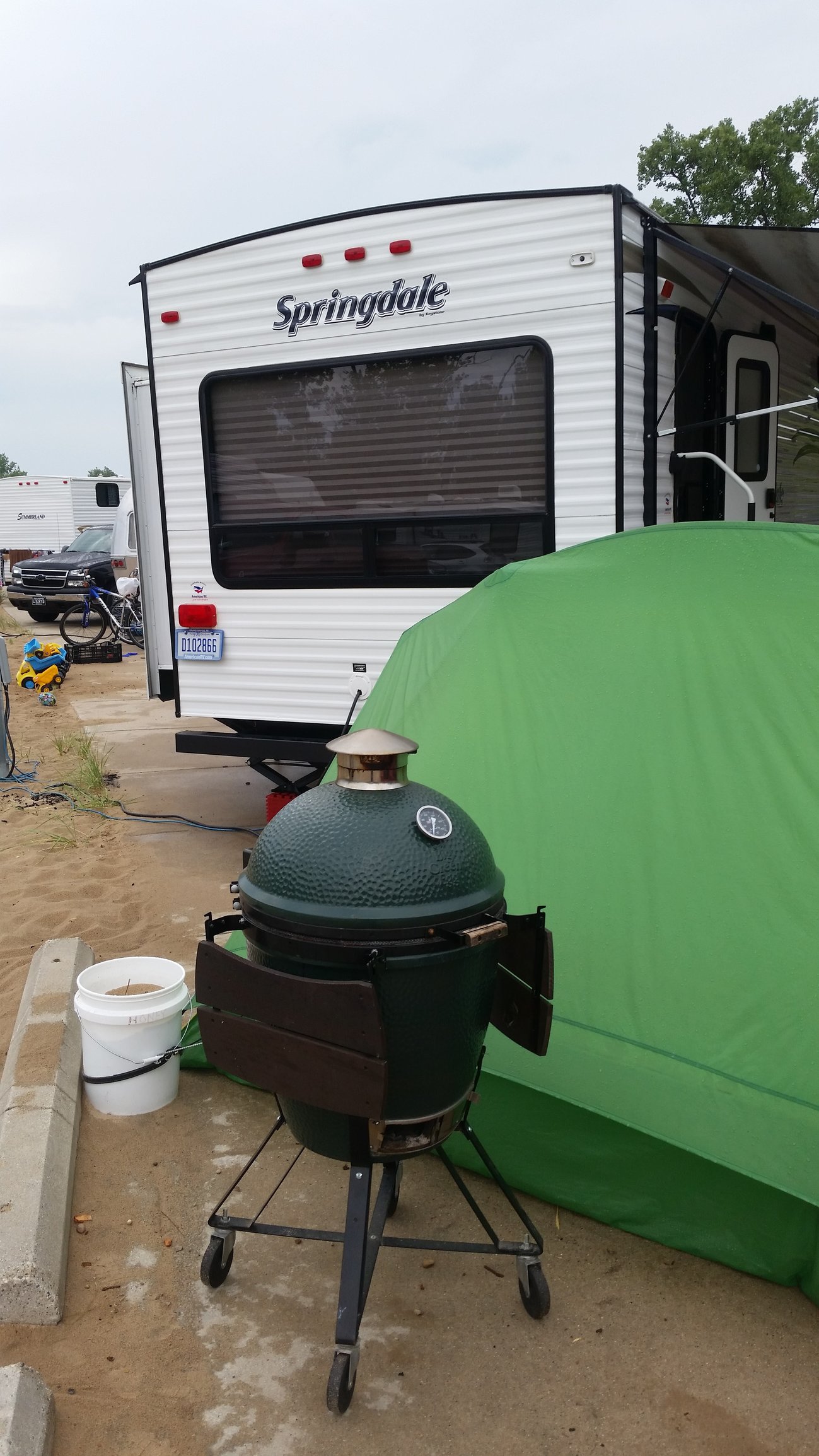Blackstone and Egg safely at campsite. Now to work a short workday and head out with my racks of ribs from Costco!BrandonQuad Cities