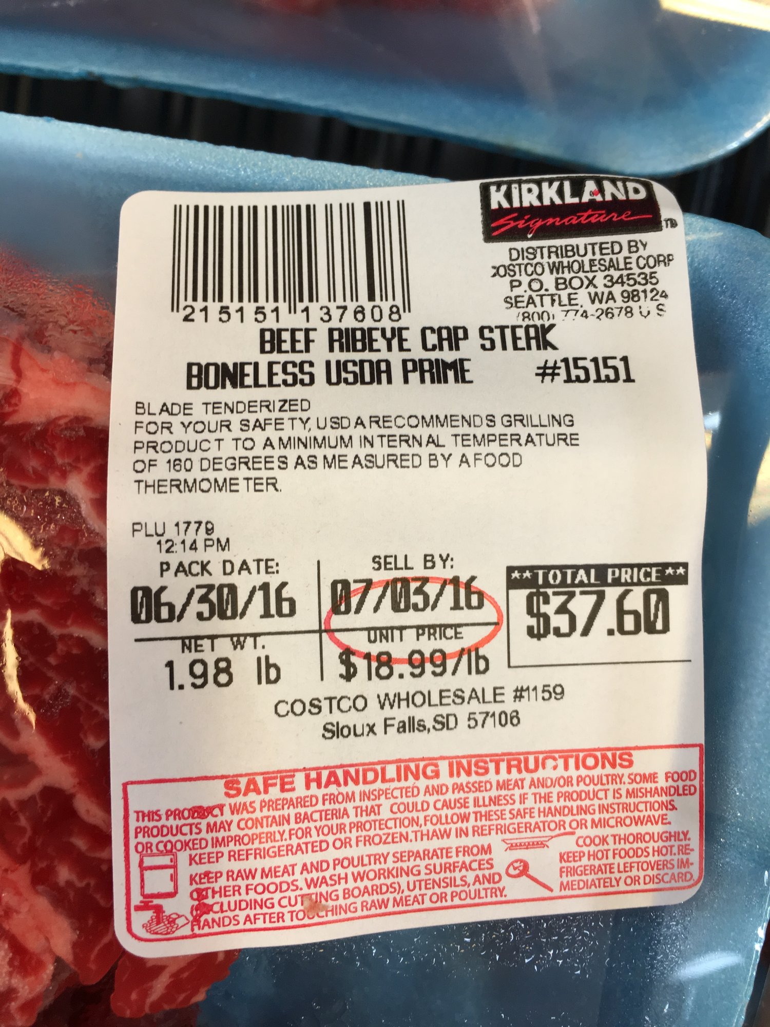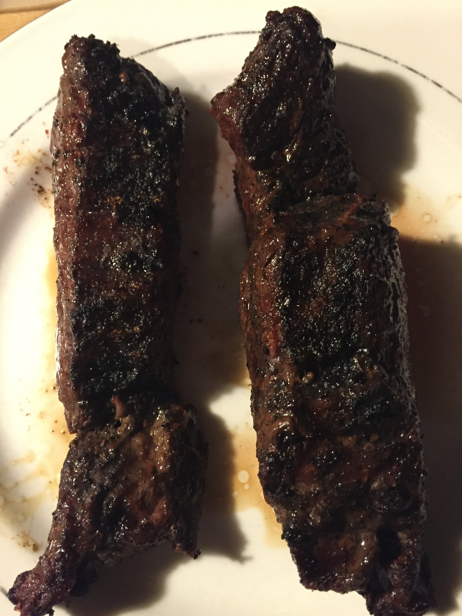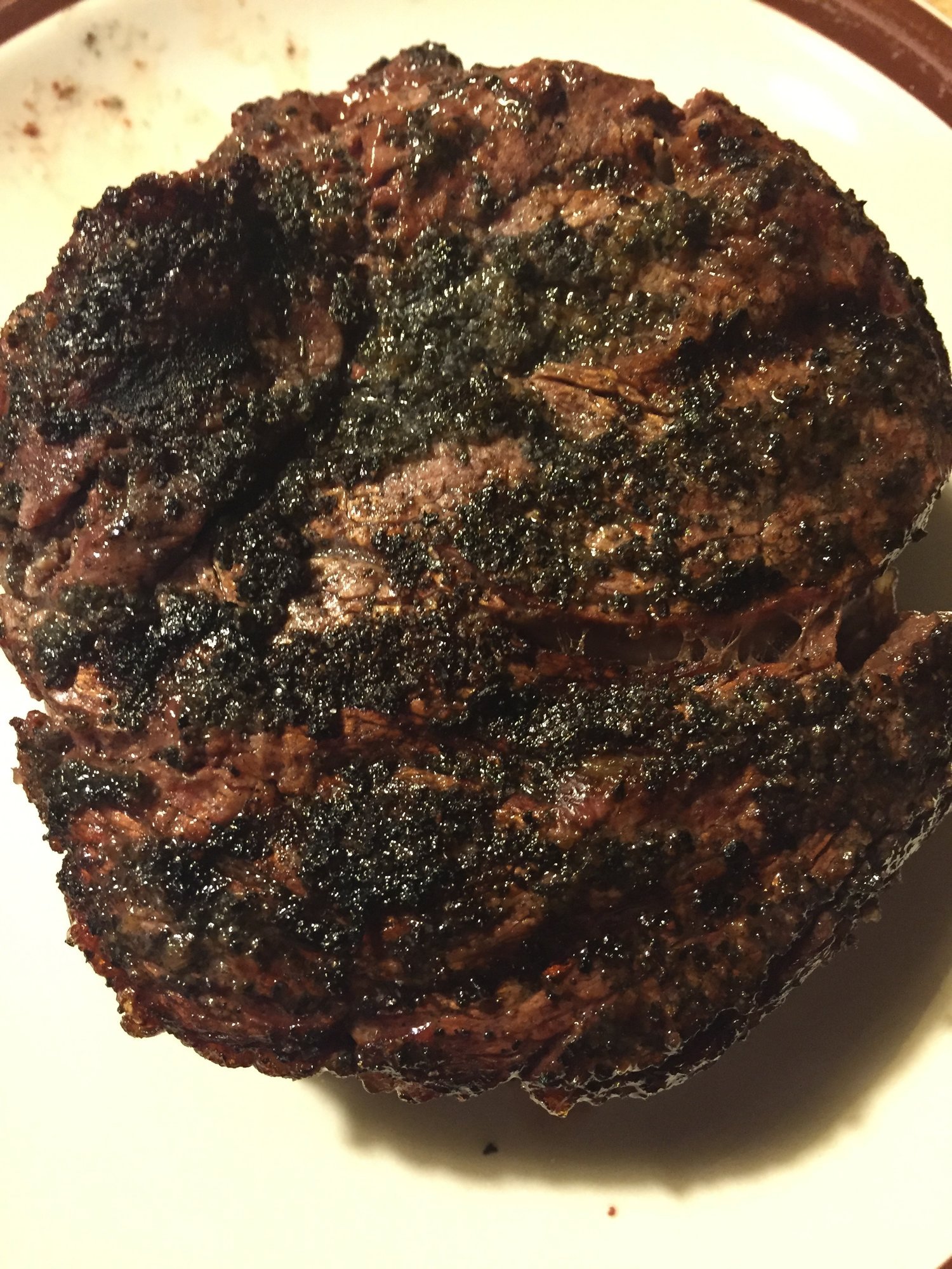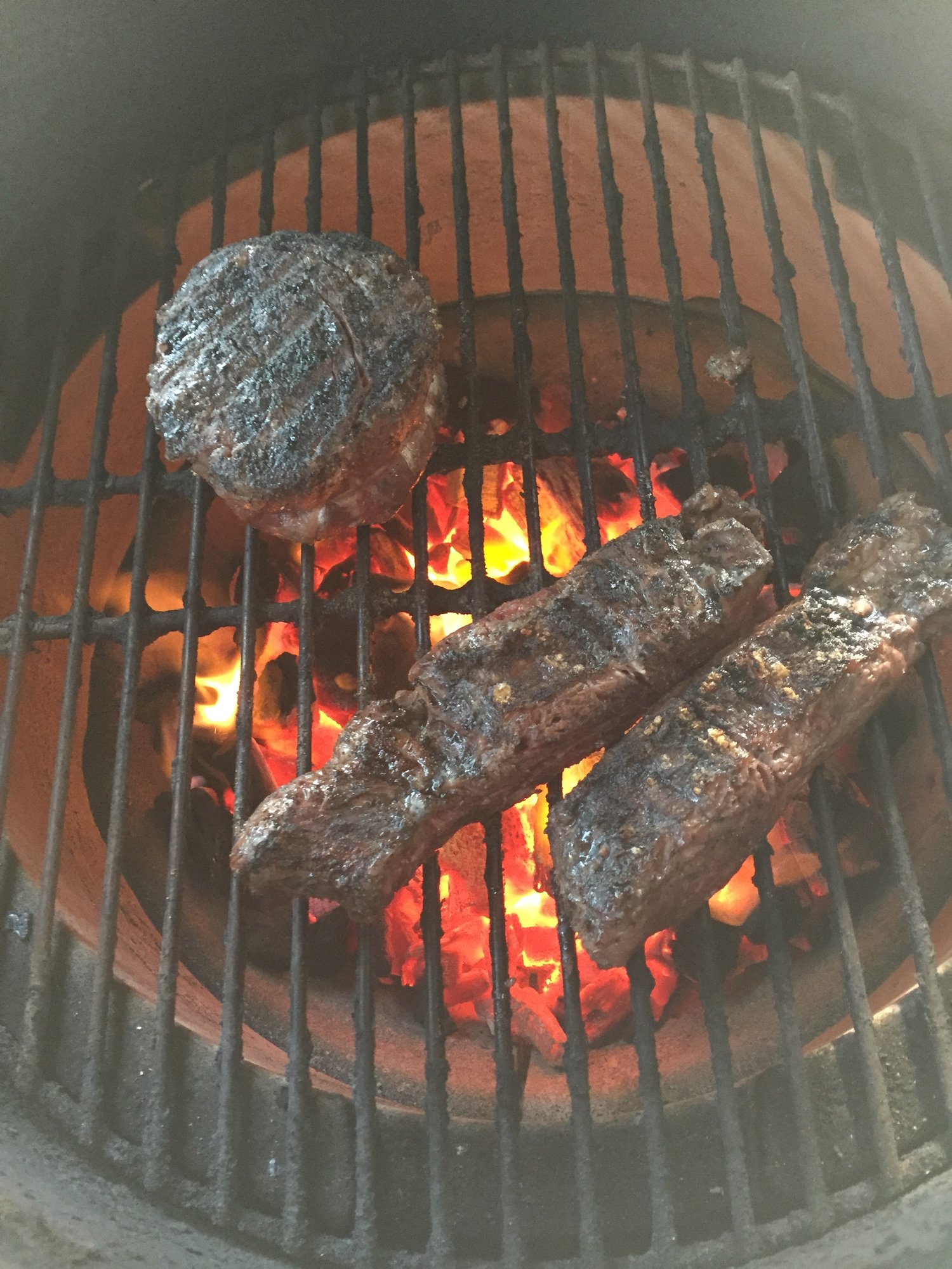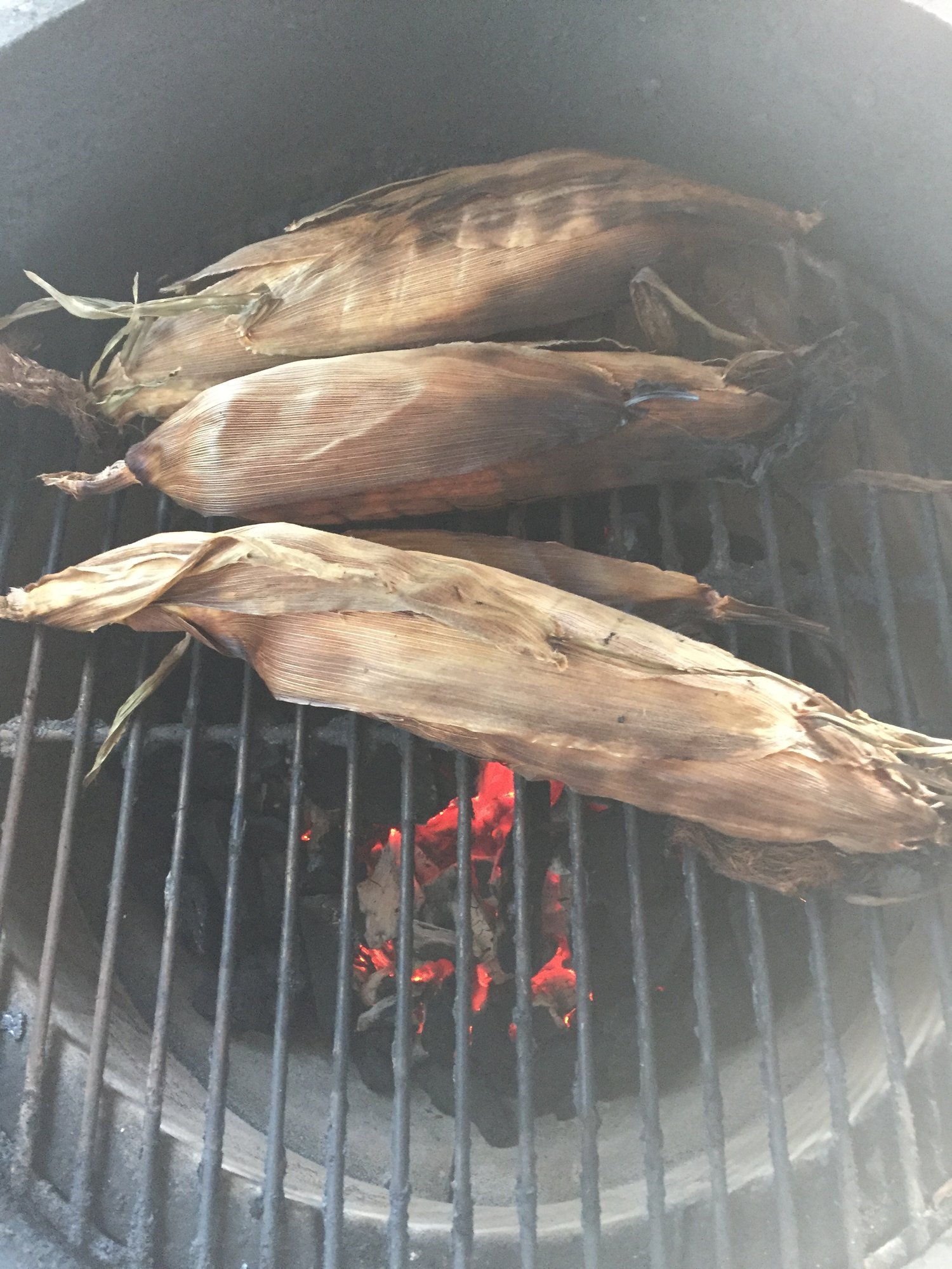 Fresh corn and my first go at the ribeye cap steak from Costco. One rolled and one un-rolled. Coarse S&P, garlic powder, and a little black magic..: