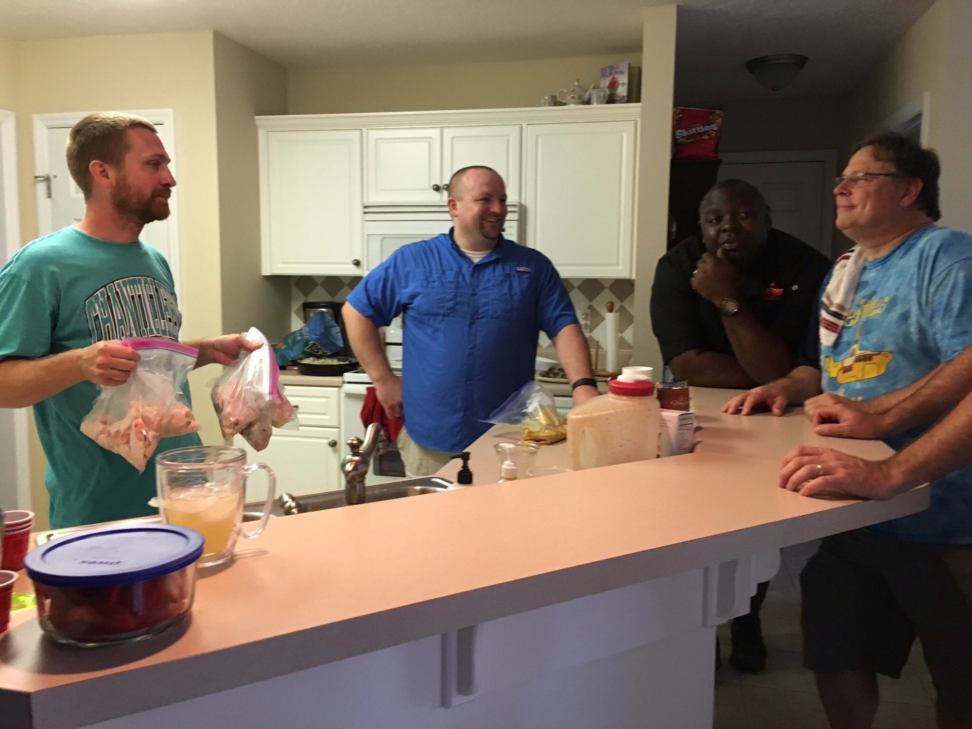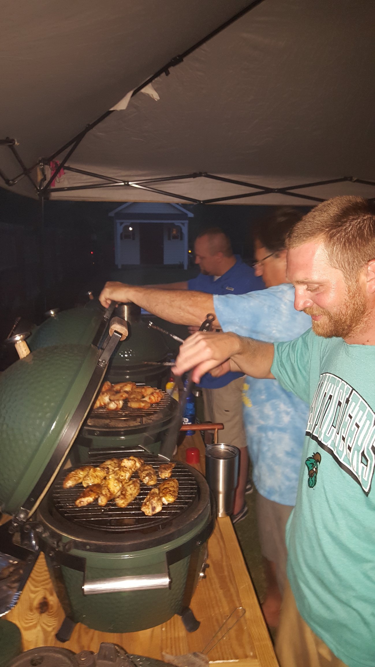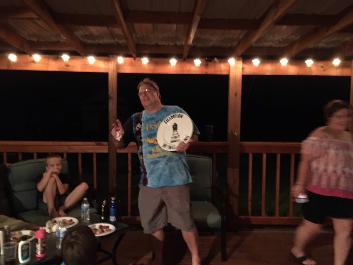 So we couldn't decide who's wings were the best, so we orchestrated a little competition. @theyolksonyou @northGAcock @Dyal_SC and @Nuke1855 were in atendace. A blast was had by all, and eventually we crowned Robin the winner, despite his cheating...