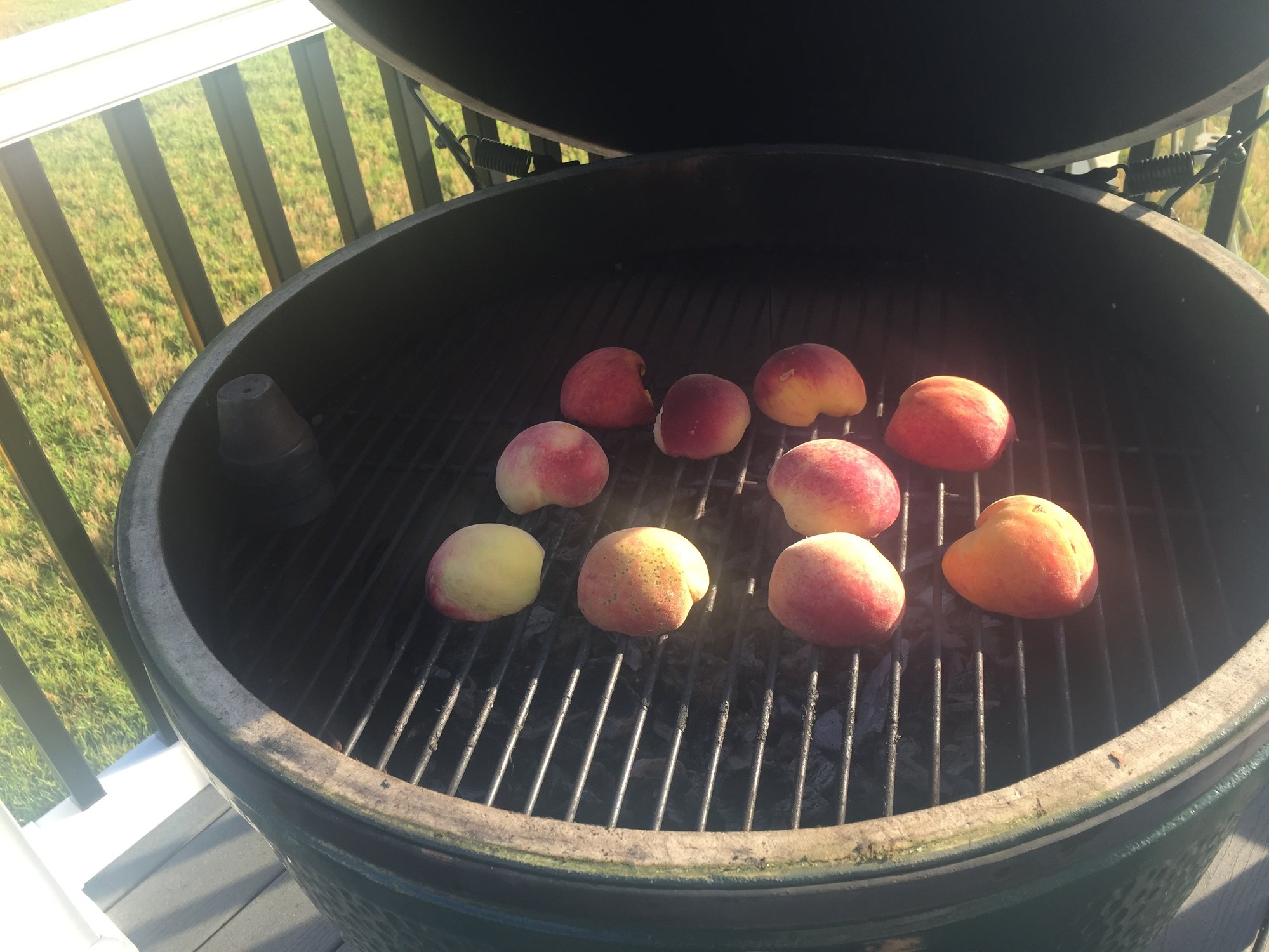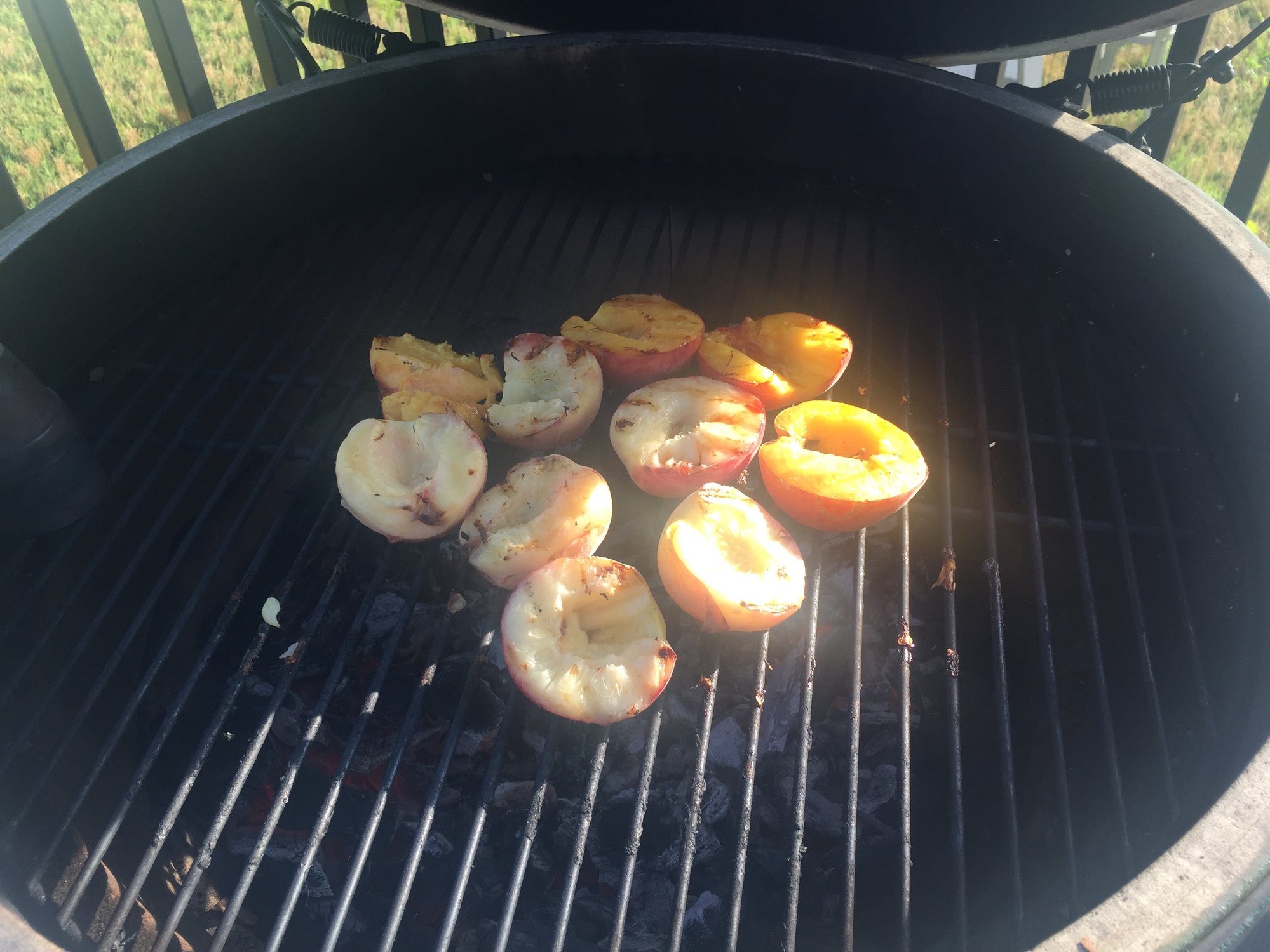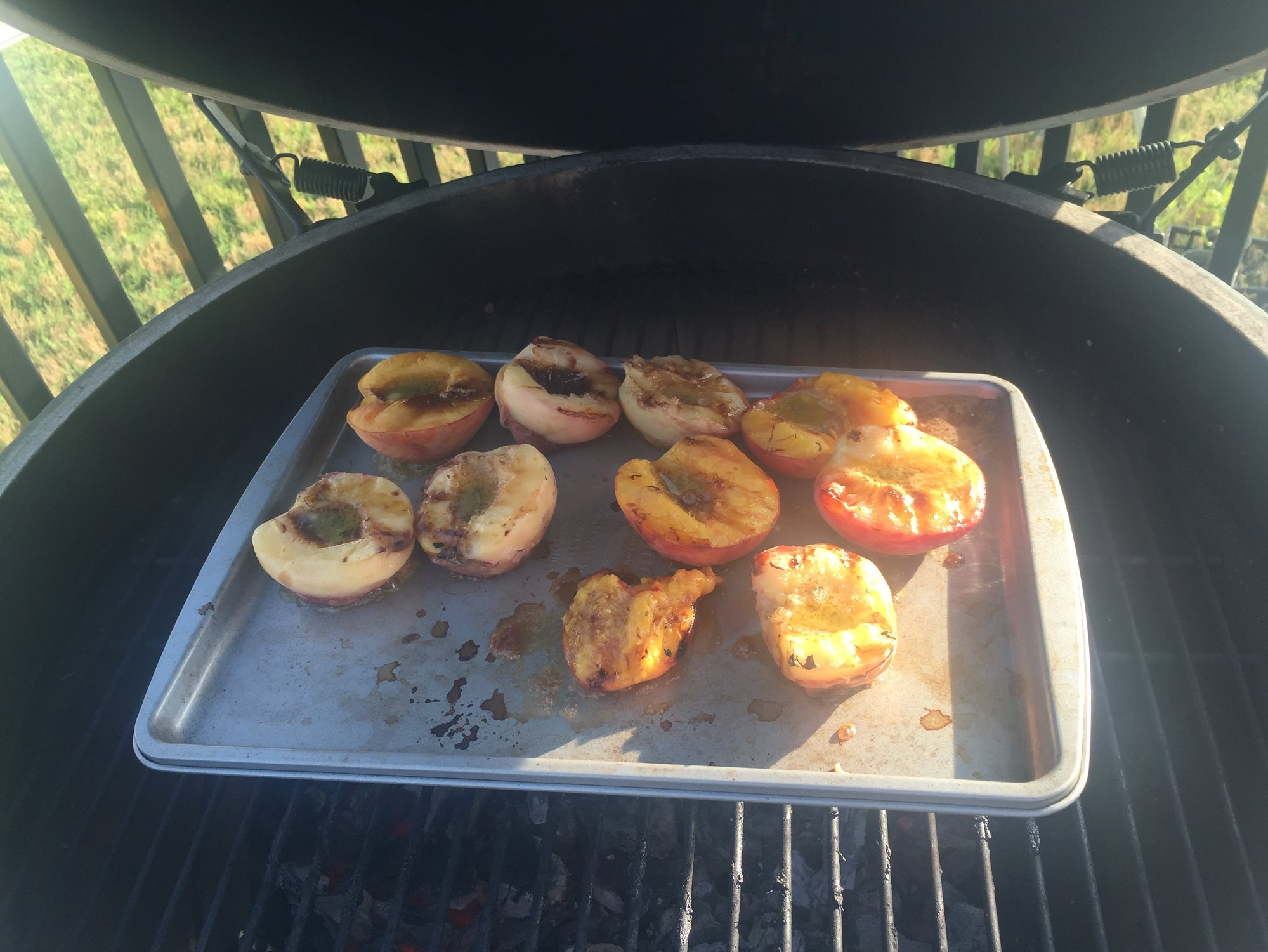 Can you tell me about the peaches? Looks like you grill cut side down till brown then flip over on a cookie sheet and add something.LBGE, Minimax