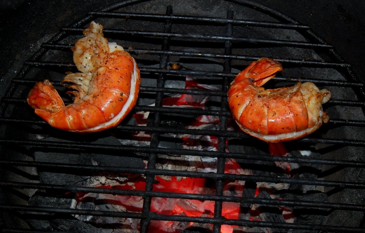 The small got the nod last night.  Such a convenient little cooker.  I don't know what a prawn is but it seemed like a shrimp raised in a nuclear wastewater facility.  These things were ridiculous: