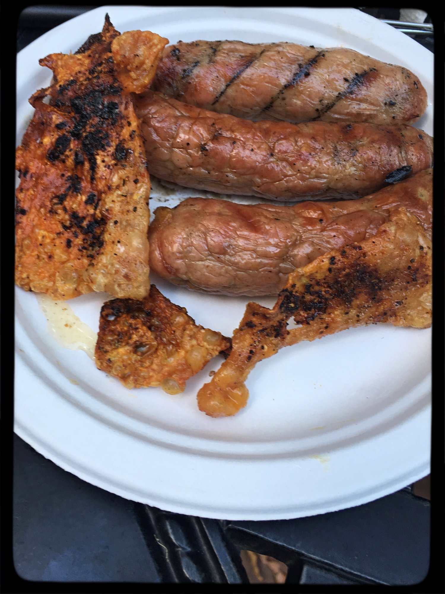 Had ad a few more sausages left so threw them on with some chicken skin. Got that idea from someone here. I forget who, but thanks!