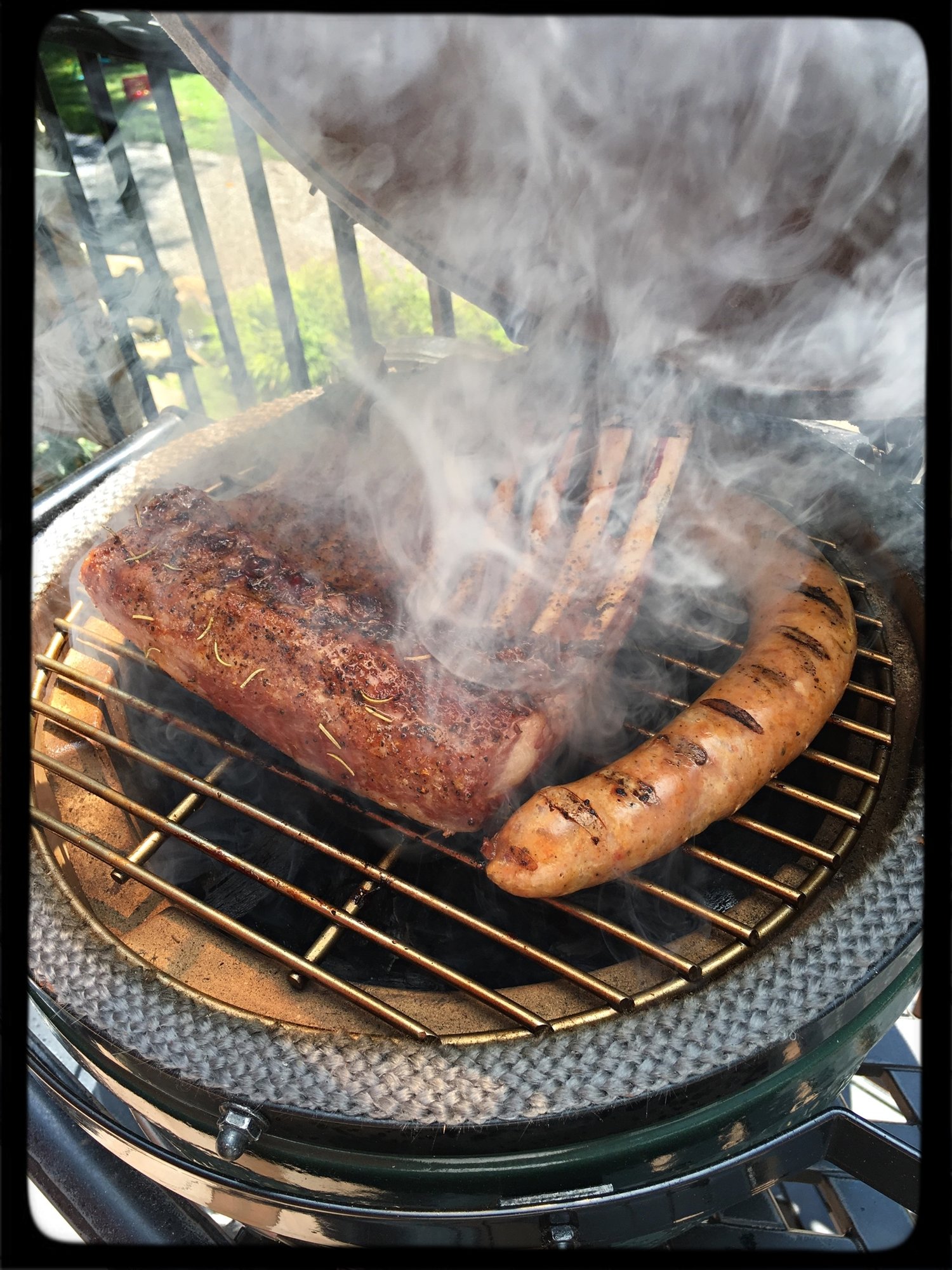 Multiple kinds of meats on multiple grills = A+Chicago, IL - Large and Small BGE - Weber Gasser and Kettle