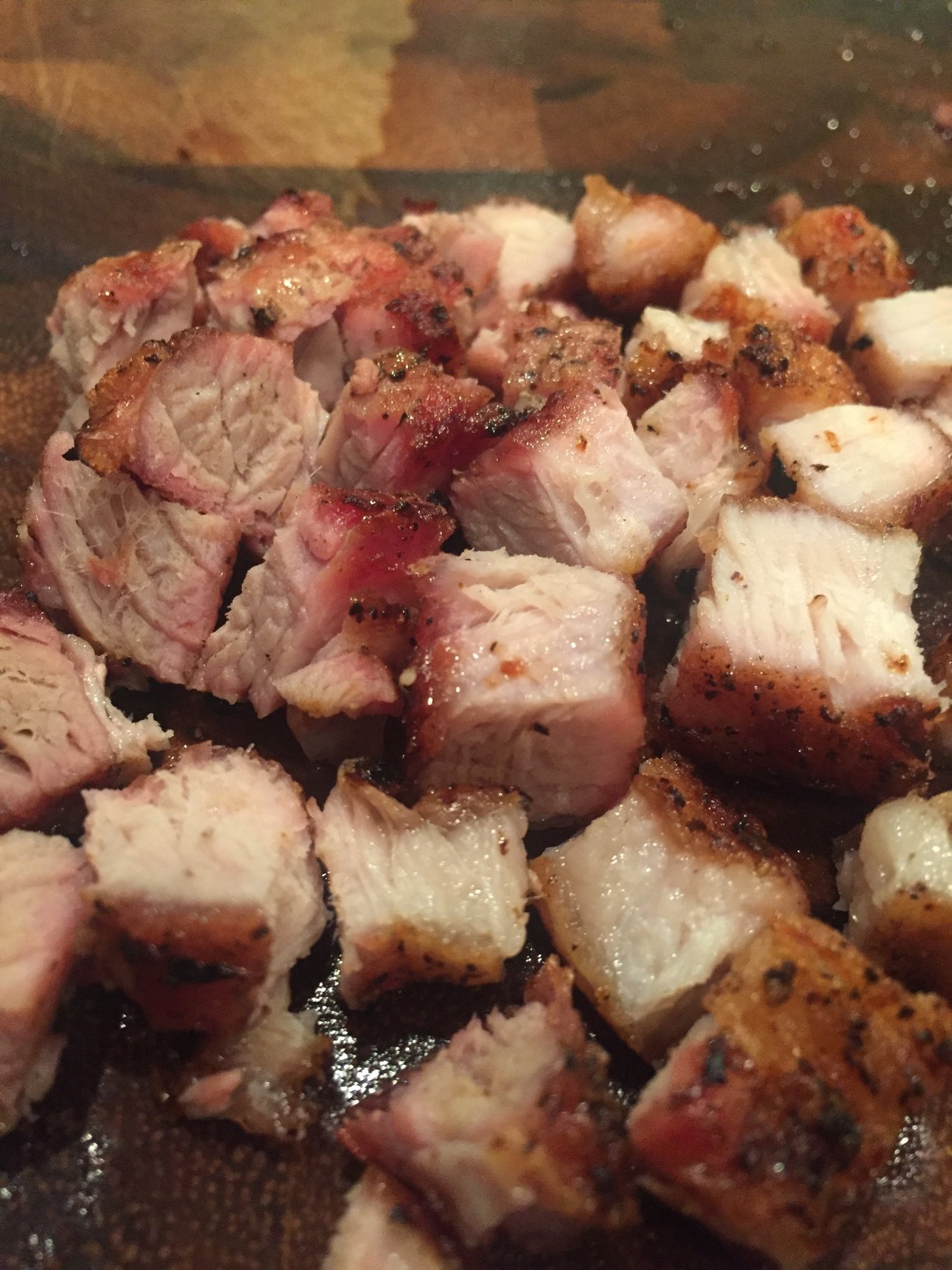 Chopped pork belly and steak. Steak finished at 135-140°