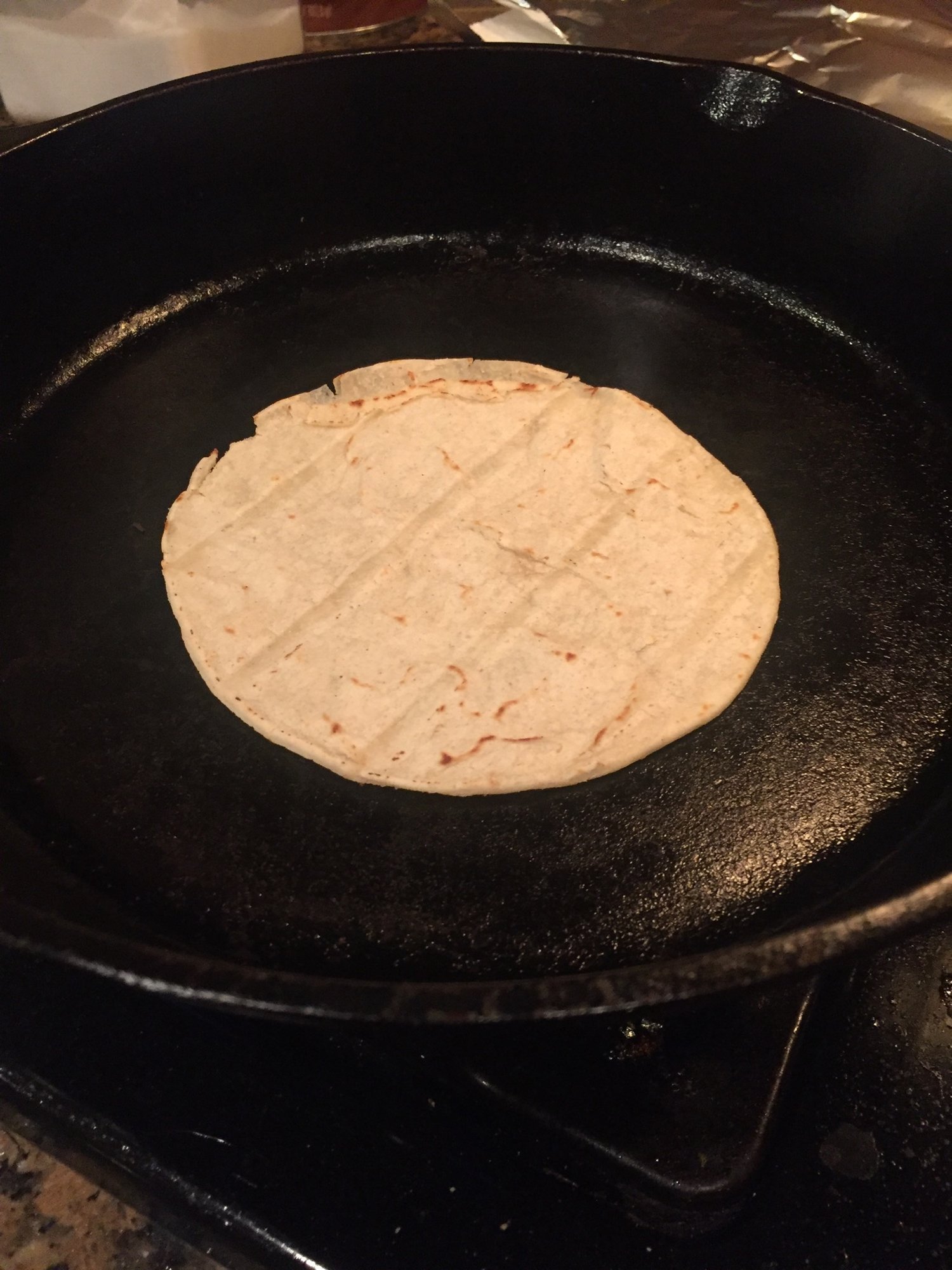 Corn tortillas cooked in the cast iron