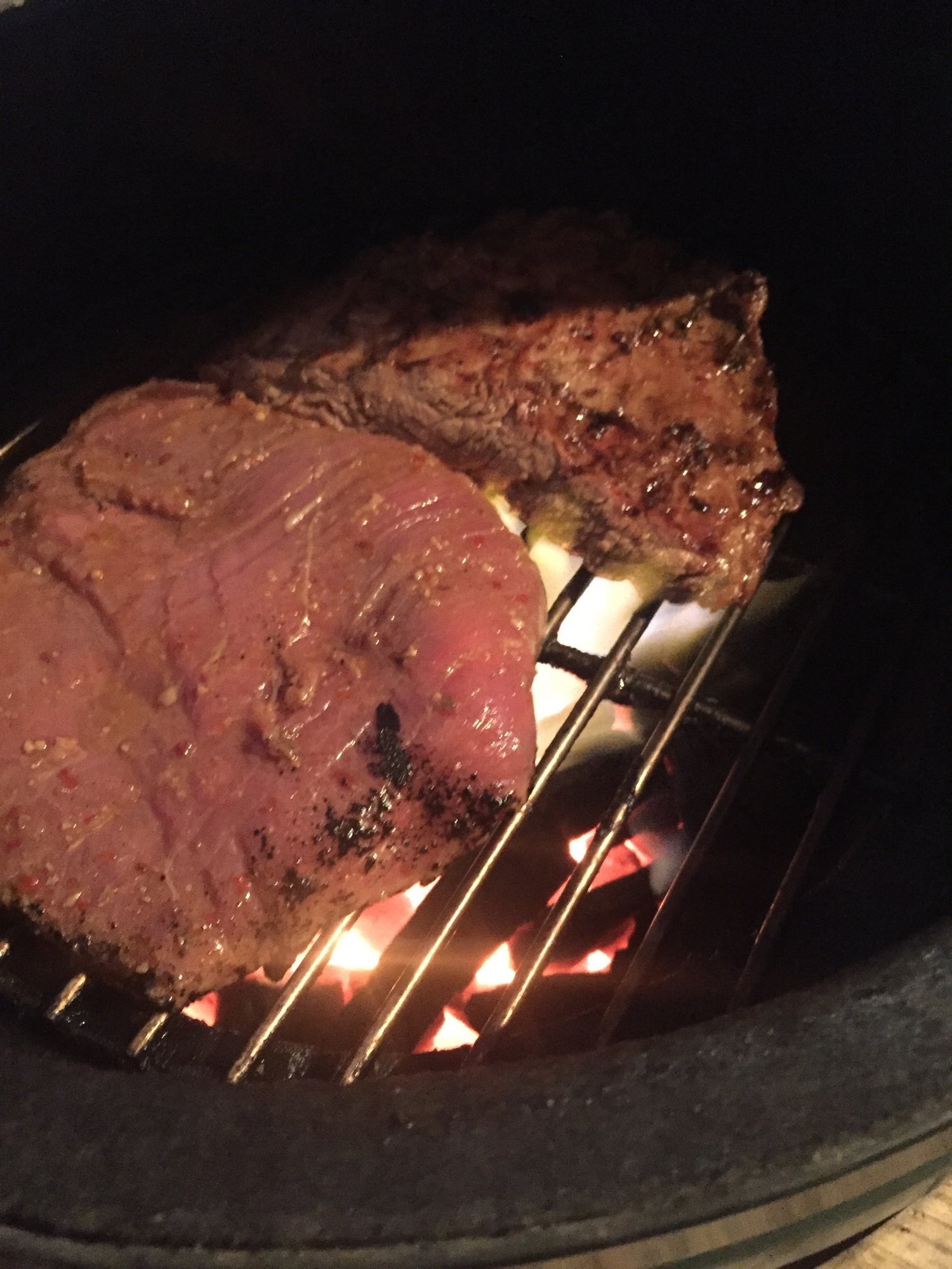 Marinated skirt steak on the small egg at 475°