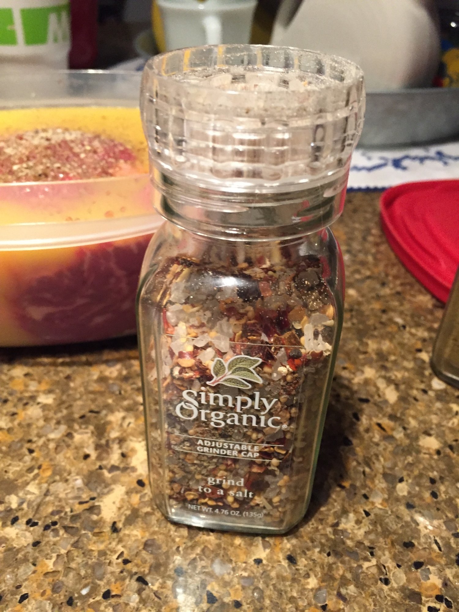Took pics of my seasonings. They were great together. The only thing I don't have pics of was the simple truth orange juice I marinated everything in.
