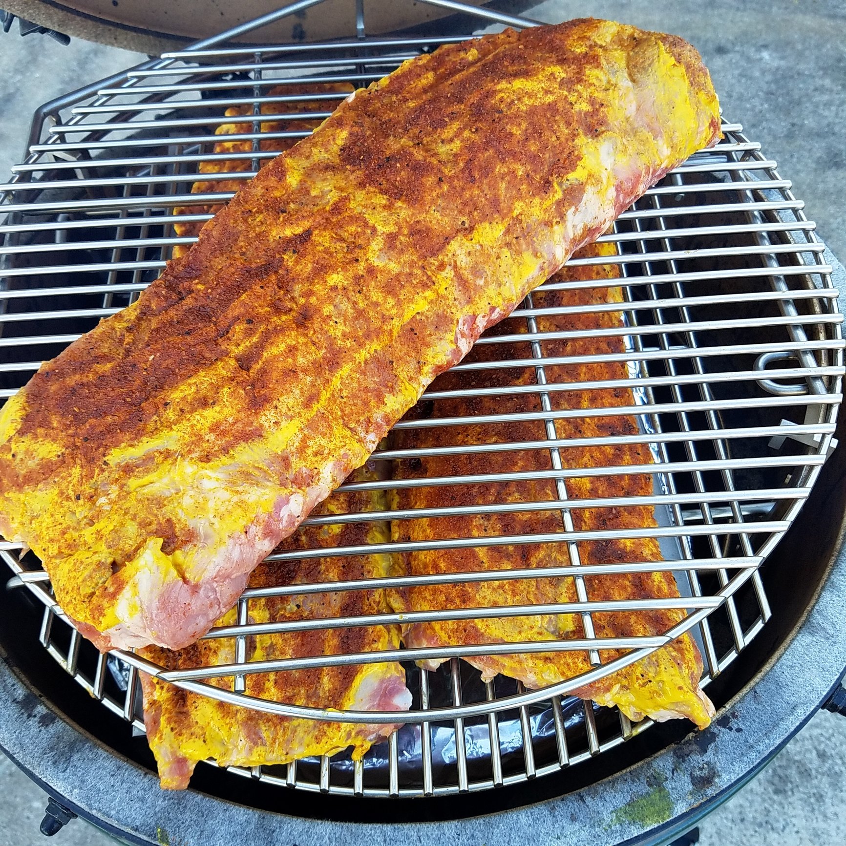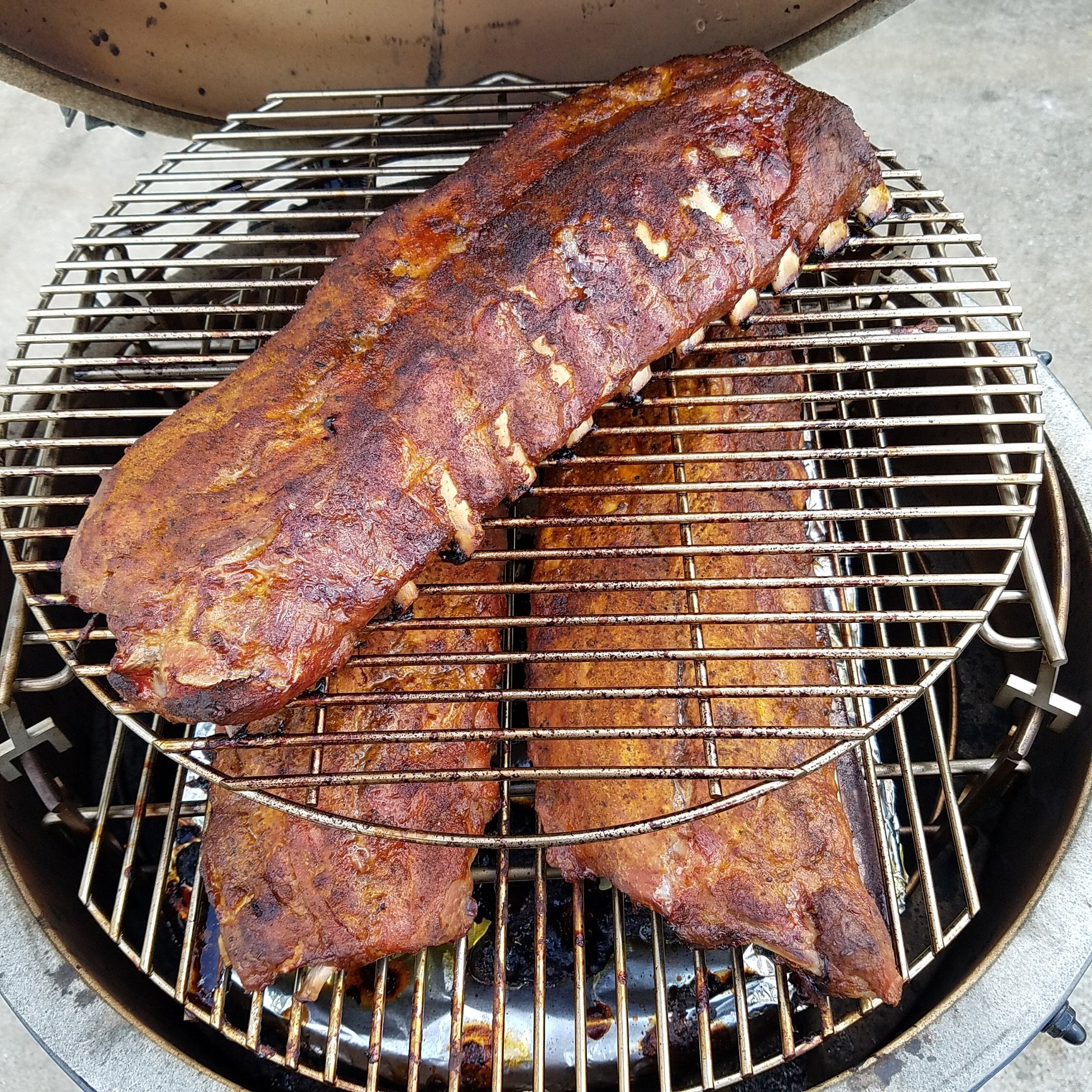 I picked up my egg at an eggfest last Saturday.  For my third cook, I decided to go for it.  3 racks of baby backs from Sam's.