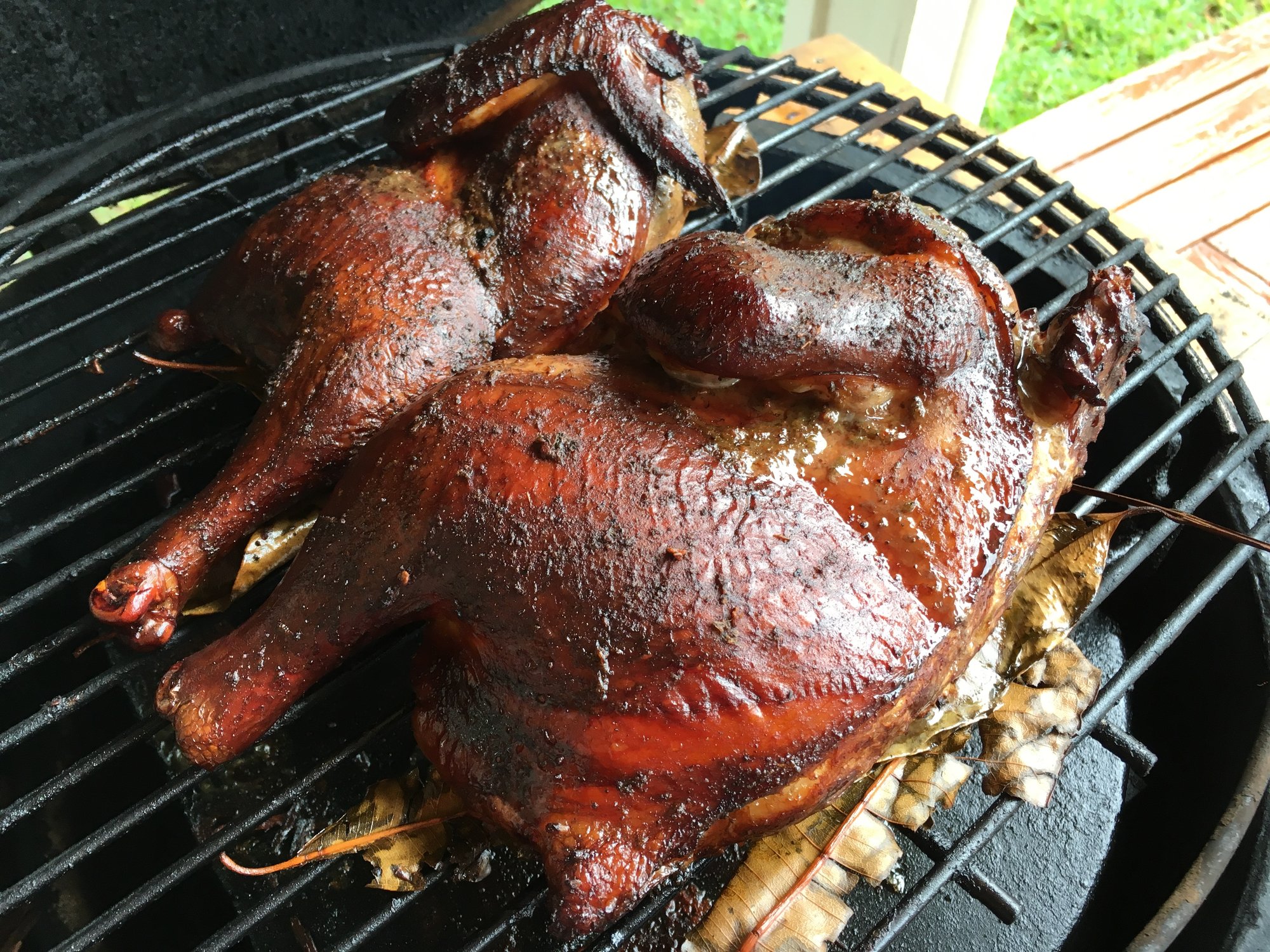 Inspired by recent posts by @SGH and others, I decided to try Jerk Chicken again. This time I ordered in pimento wood and leaves; the smell as it was cooking was amazing. Cooked 3.5 hours indirect at 225 dome until 170 IT.