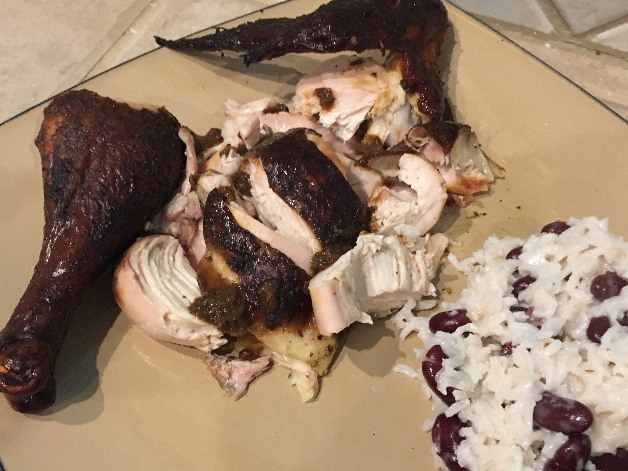 Served with with side of Jamaican "rice and peas" and Walkerwood Jerk sauce.