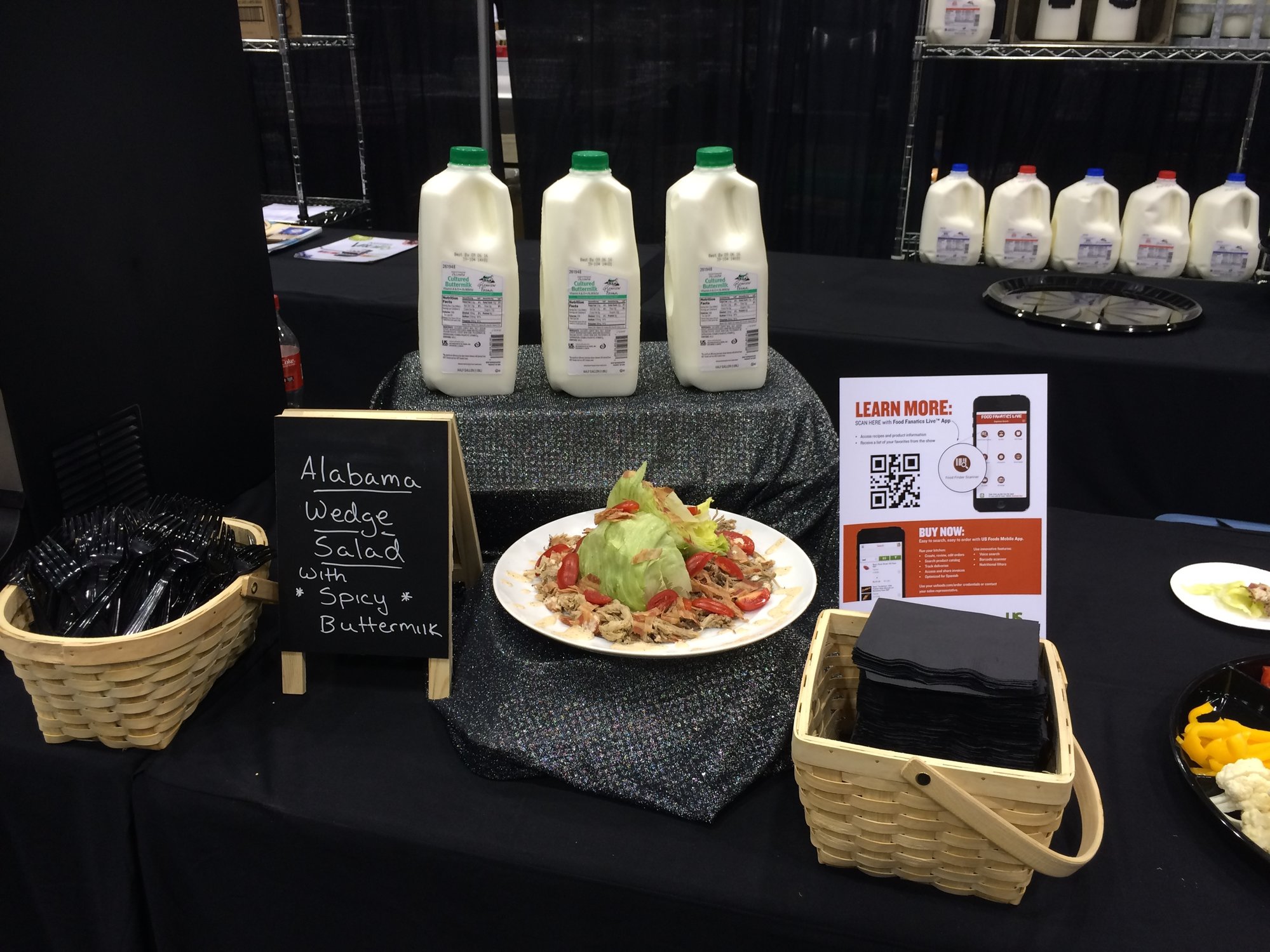 I wanted to share a couple of shots from the foodshow I just did. We had a ton of fun and brought the BGE into the limelight a little bit. The whole theme of the show was menu concepts. Well I knew I wanted to do something off the egg and I had to incorporate our dairy product. So I made a buttermilk version of an Alabama White Sauce. I paired it with a wedge salad and pulled pork and some applewood smoked bacon. Here are some shots of the booth and the salad. I called it Spicy Buttermilk Ranch as they have no idea what white sauce is. I called the salad Alabama Wedge Salad in honor of its roots. Overall it was a pretty good hit. Columbus, Ohio--A Gasser filled with Matchlight and an Ugly Drum.