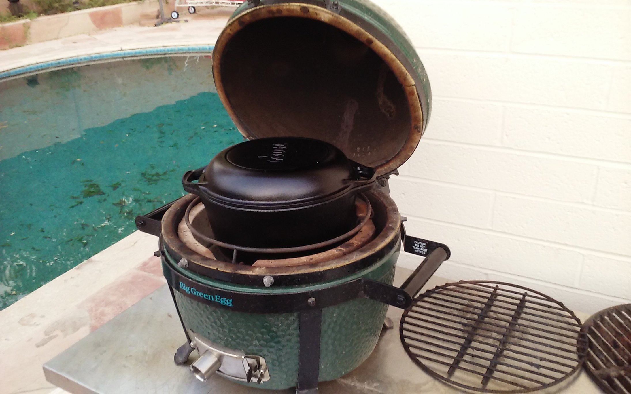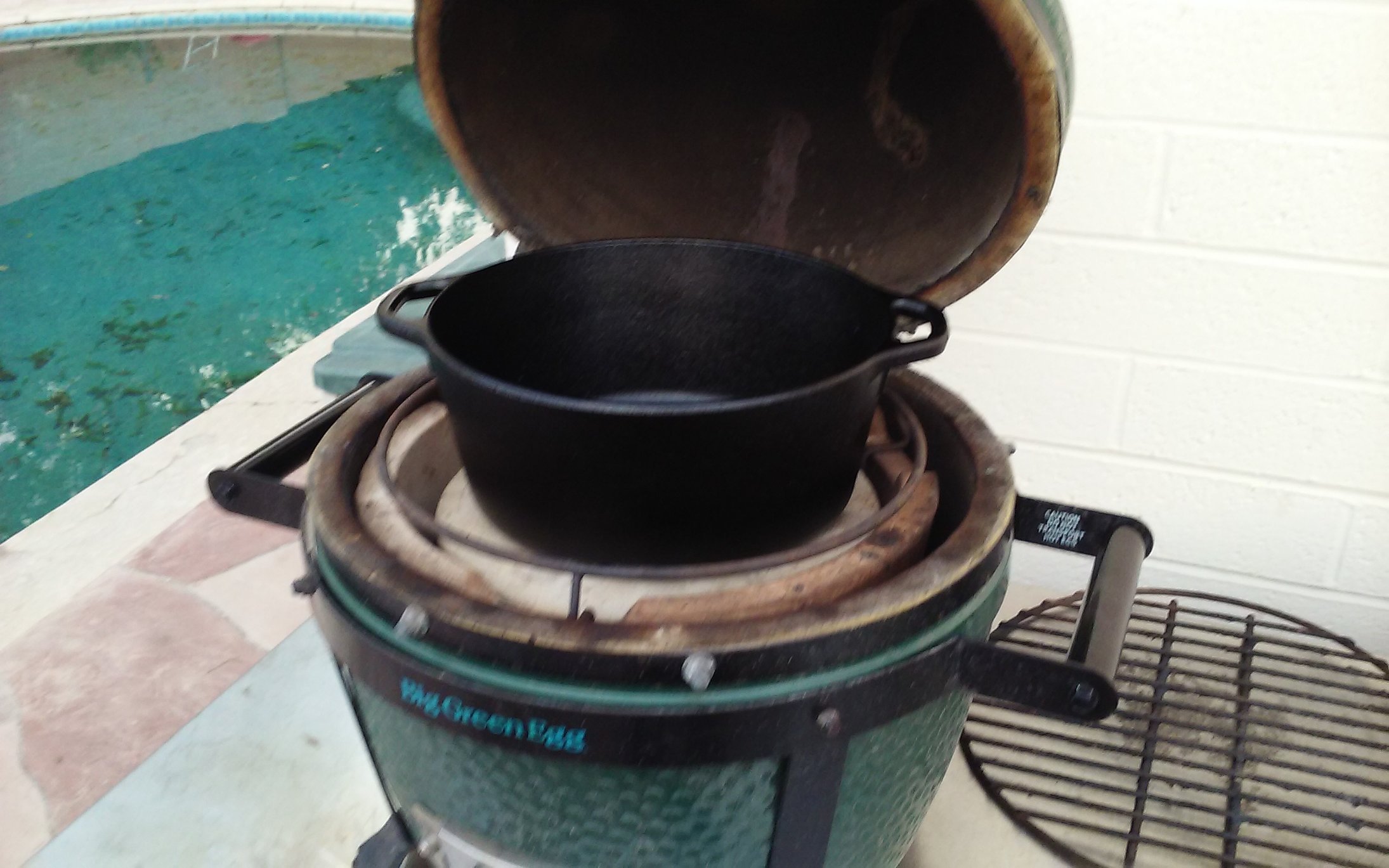 @bgeaddict. Thats the same thing i found. Remove dome thermo and DO sans lid squeezes in there on top of reg ular grate on top of fire ring and platesetter. There when i set woo on top of firerim with smaller dia ring underneath, 5 q Lodge Double Dutch fits in there. Without a problem. Ill get aome picts and post em here maybe later today. Have a lost of honey dos so ill be tied up a bit