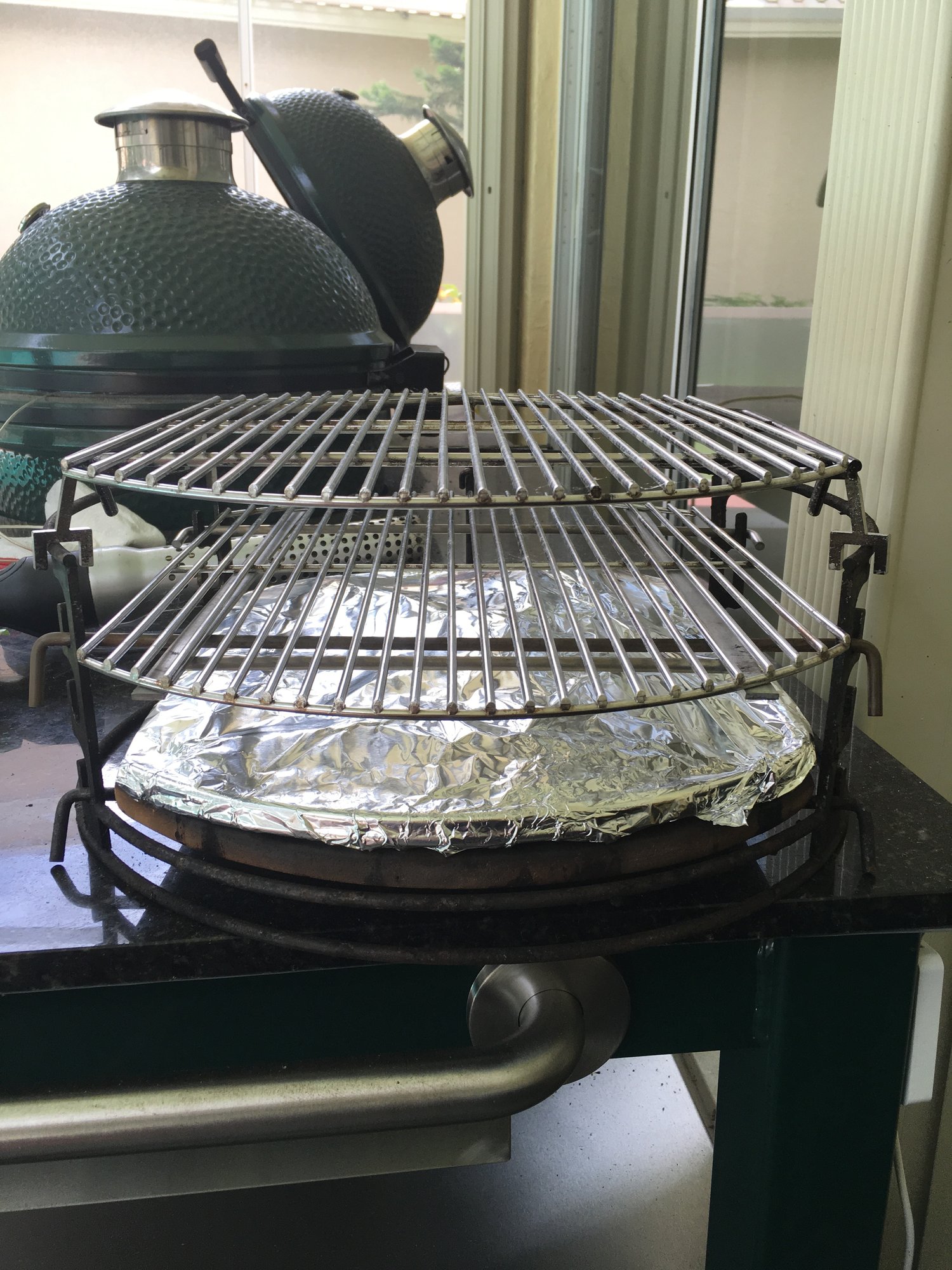 CGS setup (AR with 13x17 stone on lowest level and 13x17 drip tray ring on top covered with heavy duty foil, slide guide with 13x17 rack on middle level, Rig Extender on top with 13x17 grid).