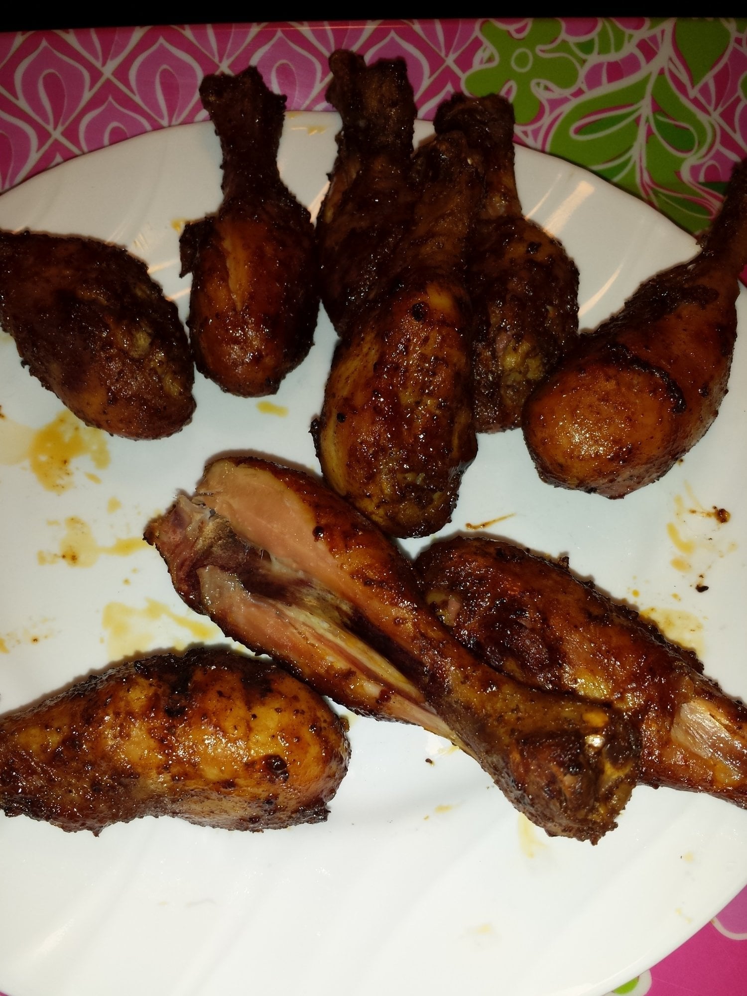 Sounds like all turned out good. For a reference the legs are safe to eat when they hit 145-150 but the texture isn't there for me at that temp same with white meat but I'll run it to 160-165 because that gives me the texture and moistness I like for white meat. For the legs and thighs I will run it up to 185 & sometimes hitting 200 depending on how the skin is looking. It's really hard to over cook the dark meat if you stay in those parameters.-----------------------------------------analyze adapt overcome2008 -Large BGE. 2013- Small BGE and 2015 - Mini. Henderson, Ky.