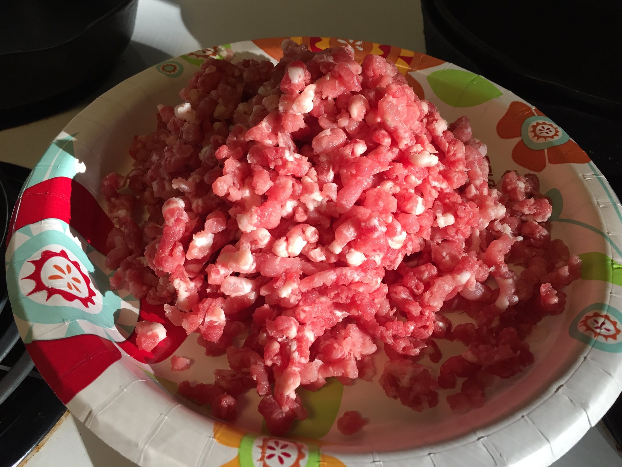 Just ground up some Duroc shoulder from my hog I had slaughtered a couple months ago. This is one pound of it that will be in a meatloaf tomorrow or Wednesday. I also made a big pork burger that will hit the egg in a little while with some hamburgers.