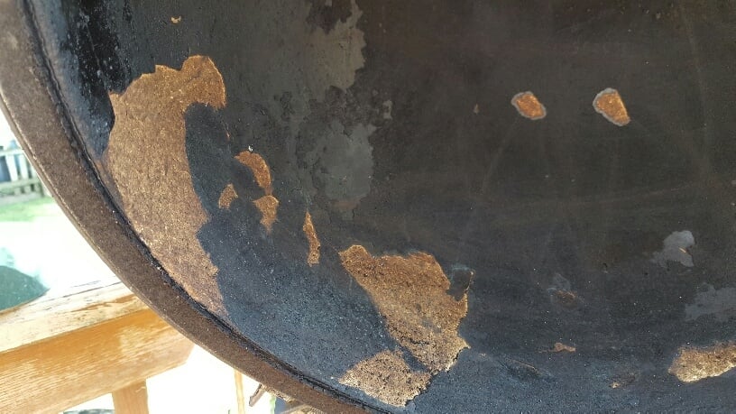 Hi, Everyone! New to the BGE and the forum. My father in-law passed away earlier this year. He had owned this BGE for about 5 or 6 years from what I can remember; used it 3 at least 3 to 5 times a week during the summer, not much in winter. He kept it covered, but outside on his deck in Western MI. I inherited the egg this spring when my mother in-law graciously offered it to me. It's in ok shape and I have used it 3 times so far in last week since I got it home and set up, but I have some questions and concerns. The gasket, definitely needs to be replaced, which is the least of my concern. The two main issues is the outer finish on the back of the grill and the flaking on the inside. I tried to scrape some of the flakes off on the inside, but it is very rough under the flaking material. Almost like the inside finish is coming off with the char. That does not seem normal as all the pics that I have seen on the forum have nice blackened and smooth dome interiors. My question is, since I did not purchase this egg, nor can my mother in-law find any paperwork pertaining to the purchase (she does not even remember the dealer it was bought from) it there anything I can do as far as a warranty claim? If not, what would you recommend? Is there a good touch-up paint for the outside. Should I just leave the flaking material alone on the inside and not mess with it?