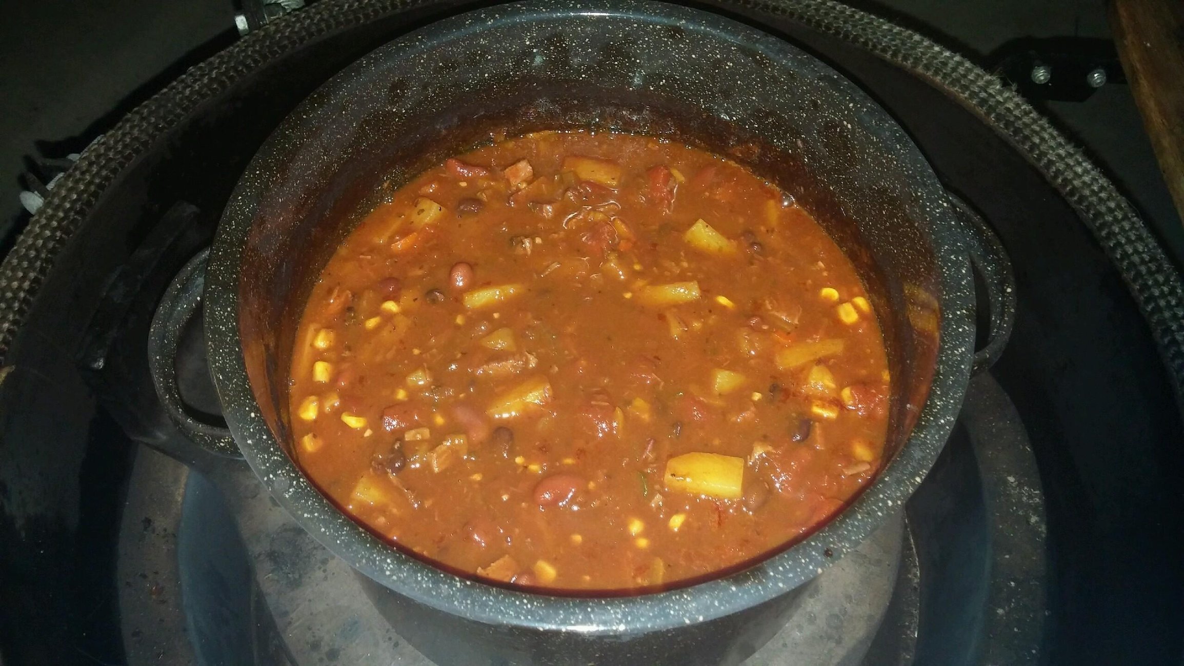 I cooked the chili initially on the stove as the recipe calls for it to be cooked and than rested in the fridge overnight. So the next evening I threw it on the egg with some apple wood for a light smoke.