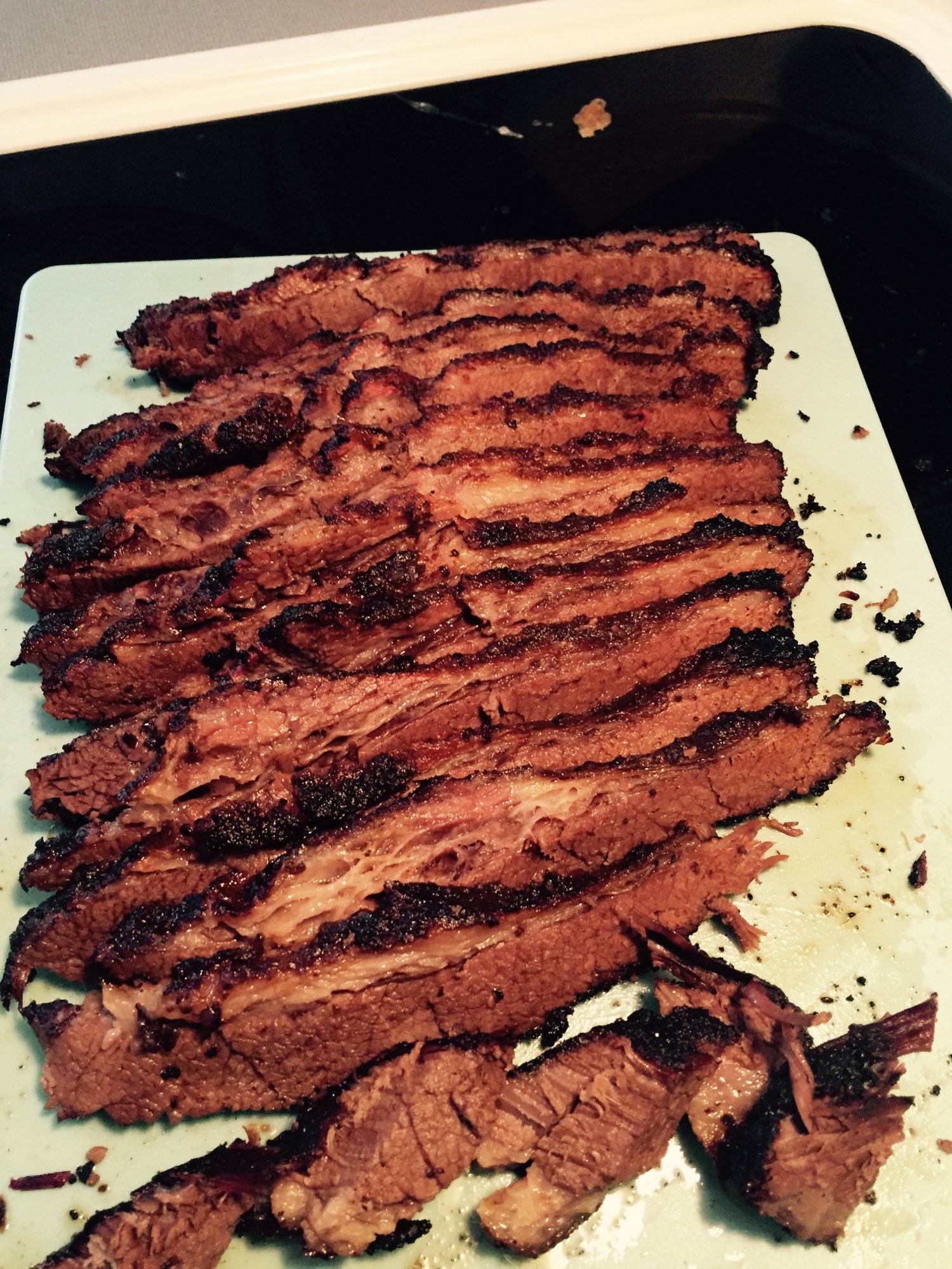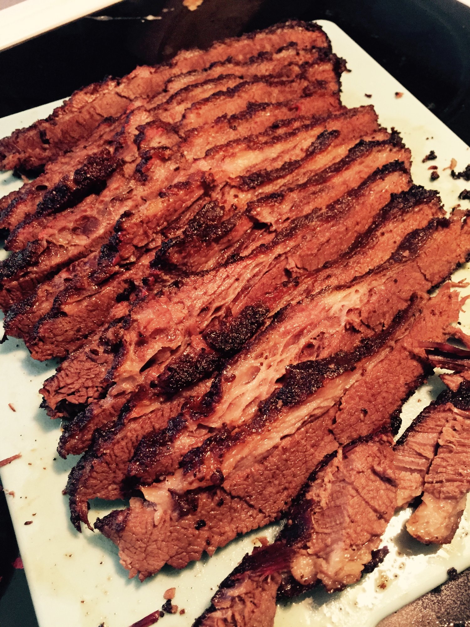 Growing up I was never really exposed to brisket, so I am not any type of expert on how to prep, cook, etc. I did some reading in here and just kinda had fun with it. Ran the egg at 325 with rock wood and oak chunks. It tastes really good and was fairly fun and easy.