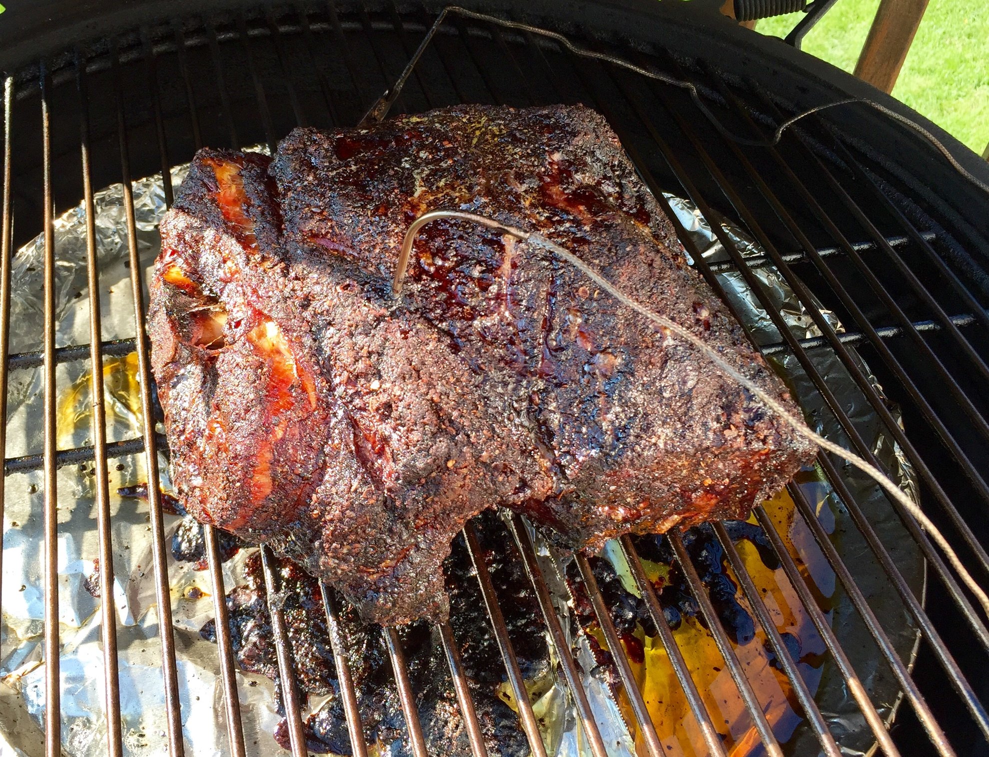 Started an 8.25 LB Compac Duroc Pork Butt at 1:00 AM CST at 225 grate.Chris Lilly injection and DP Coarse Grind Dizzy Dust rub.