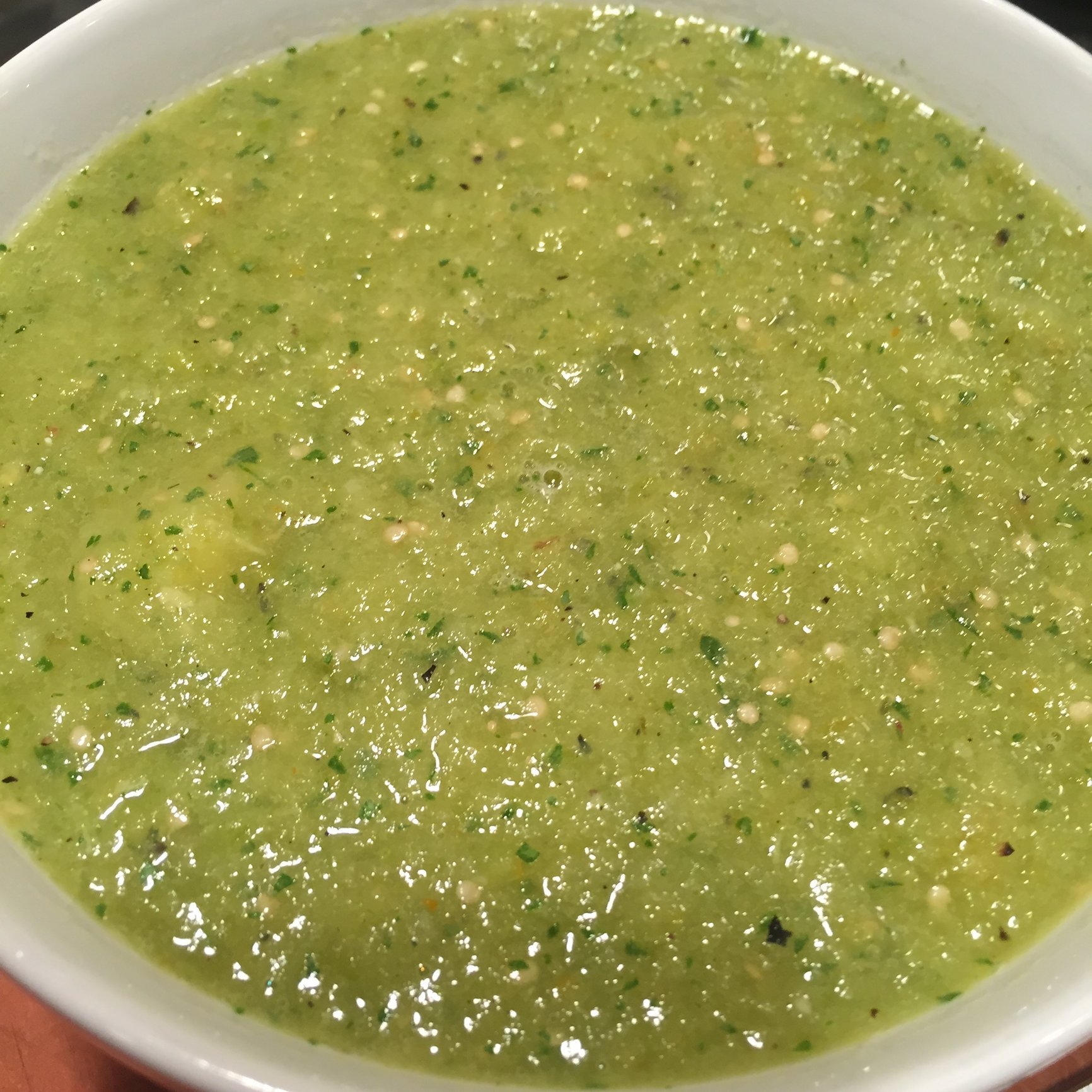 First peel & boil the Tomatillos for 10 minutes and place them into a blender. After about 10 minutes sitting in the blender they released a good bit of water that I poured out.