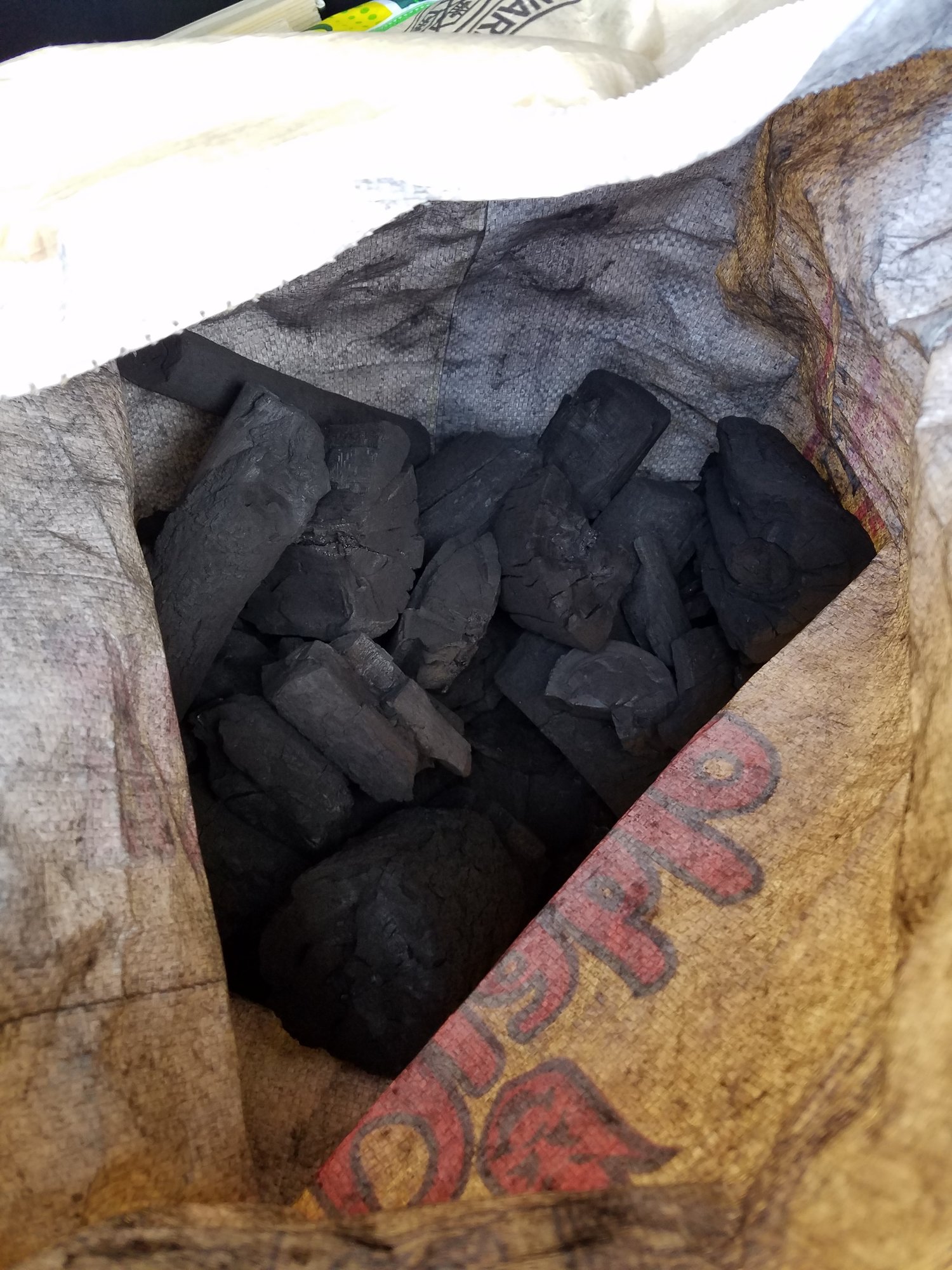 Had to break most of what I pulled out off. 6 pieces to fill XL after I broke it up. Heated up quick, not sparky, and clean burning very quickly. Grilled fajitas on it over CI grids. No strong taste. Started fire to right side so I had a holding place.