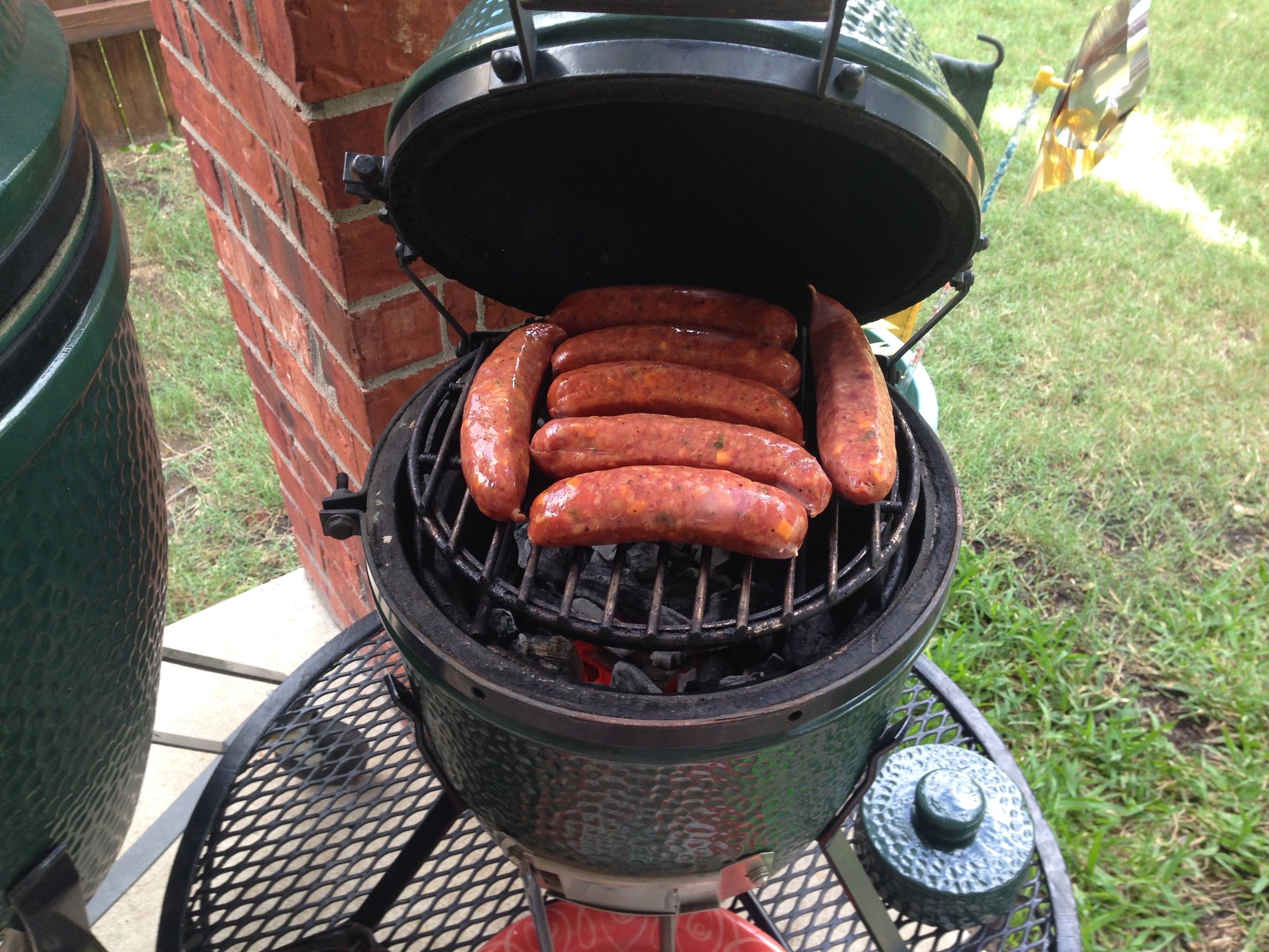While that was simmering away, I busted out the old Mini and fired her up with some jalapeno cheese sausages to snack on during the Baylor game. Not sure when the last time I used the Mini was.