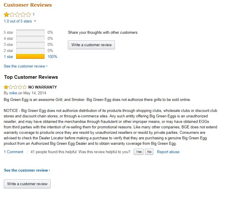 best part about that Amazon egg: not an authorized dealer, well I didn't read it all, but hey don't authorize that shipping method. -