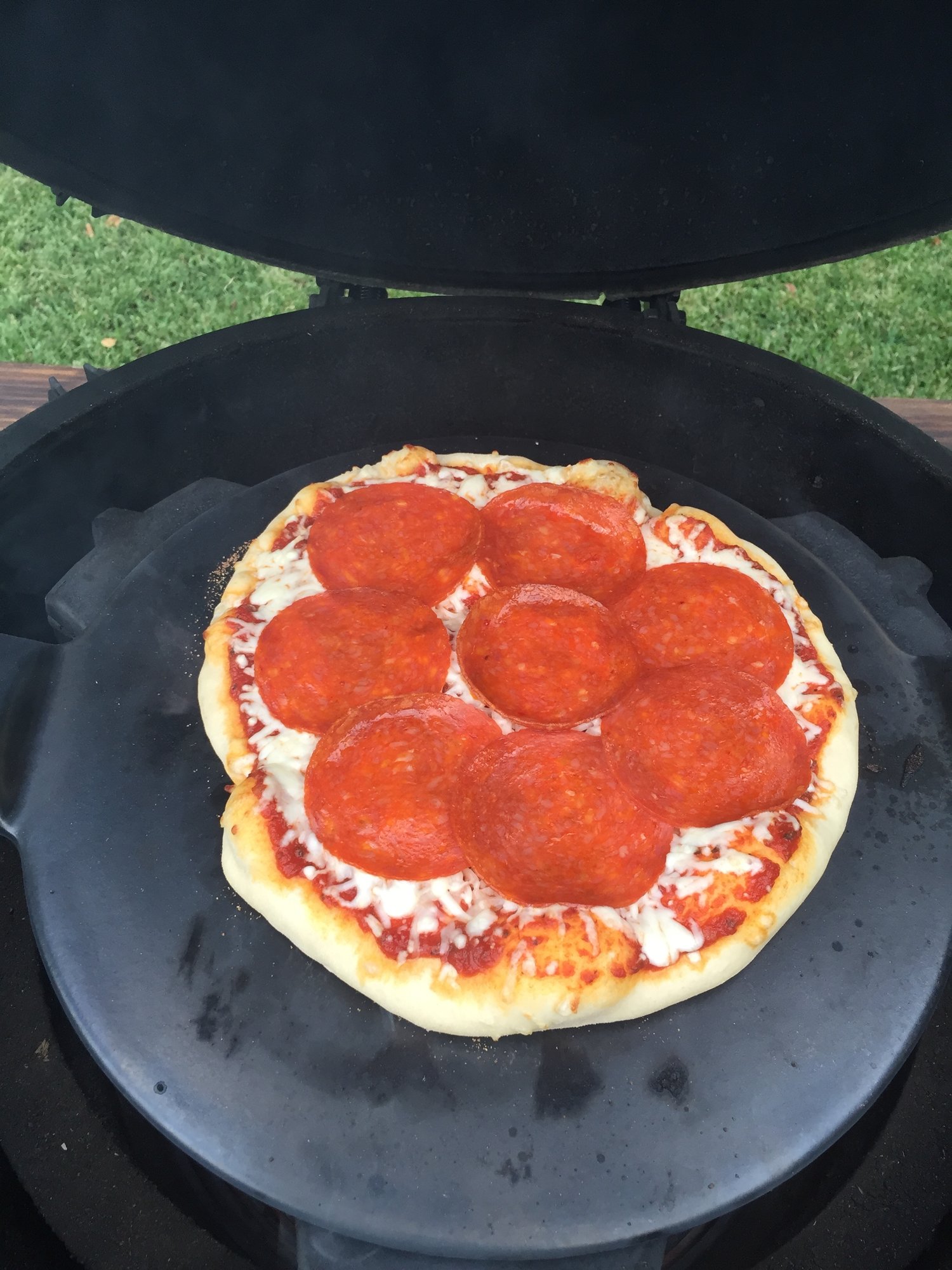 I usually buy the pre made dough from our grocery store but you guys inspired me to make my own last night. It was so much better and cooked evenly throughout. I think gradually heating the stone while you're getting egg up to temp is key.