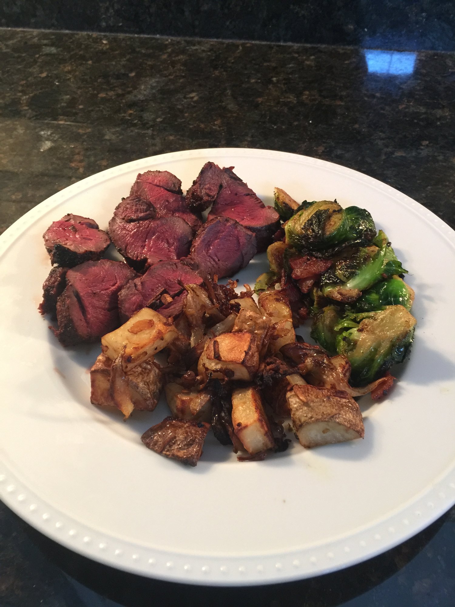 Venison, sprouts and taters