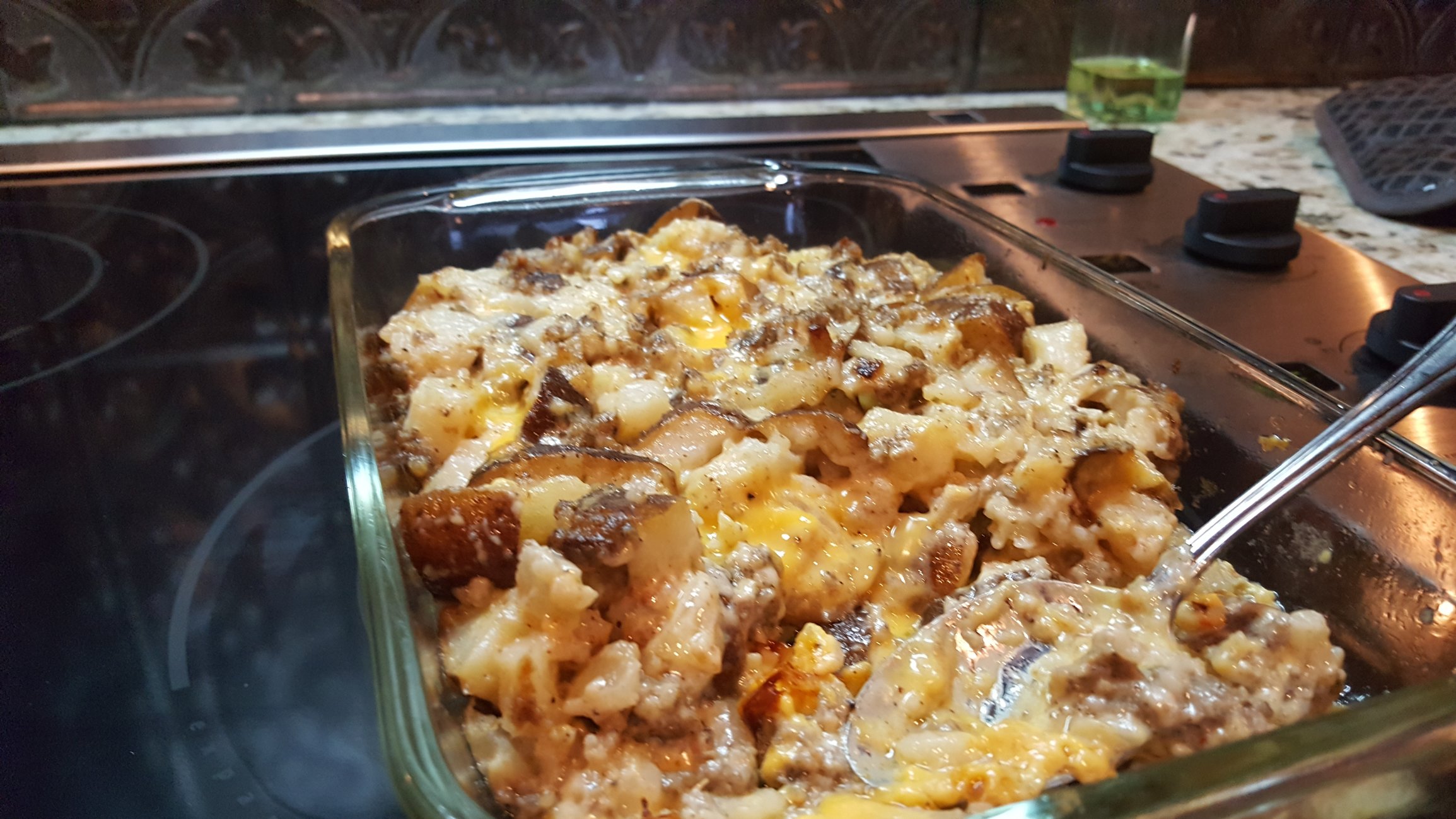 Head Country rub and sauce. Tailgate taters. Bake potatoes cubed, sausage, onions, Velveeta and Dukes mayo.... Bake till crispy.