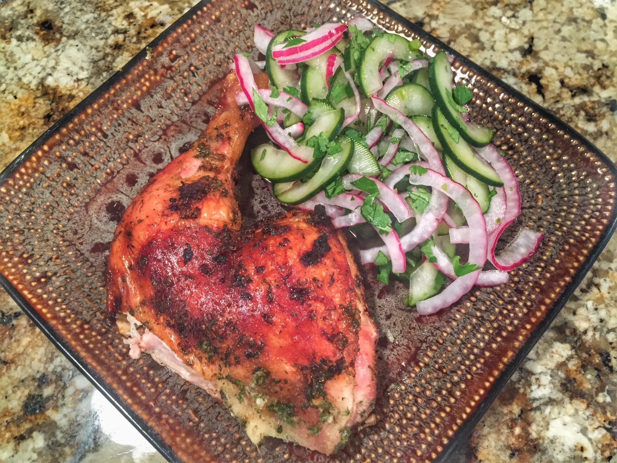 Served up with some cucumbers and onions that were pickled in rice vinegar, sugar and a little water.