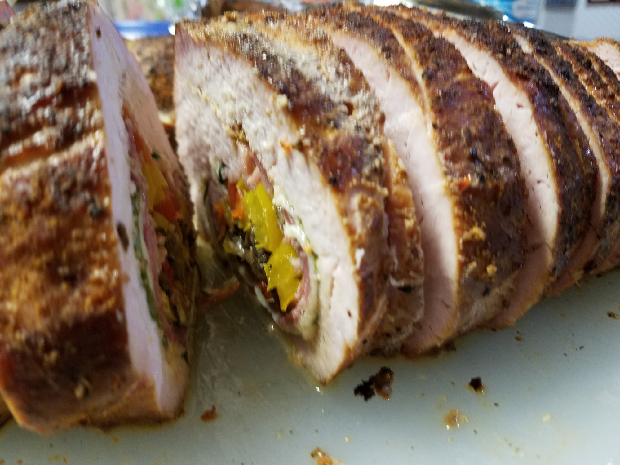I love doing stuffed pork loin. Spinach, cheese, salami, ham, bell pepper, mushrooms, put whatever you want inside.