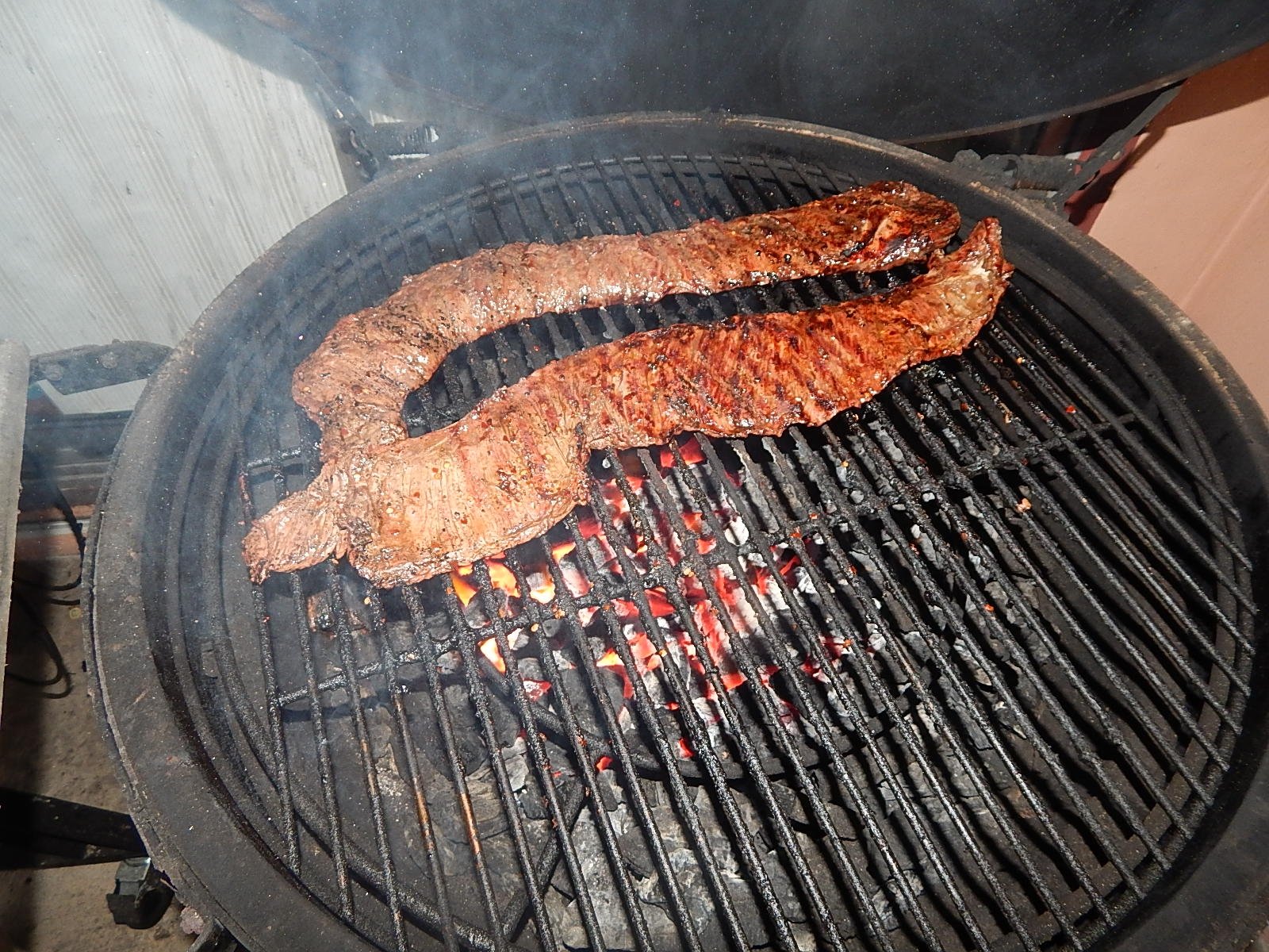 That looks so good! Love cuts like skirt steak on the egg!Southlake, TX and Cowhouse Creek - King, TX. 2 Large, 1 Small and a lot of Eggcessories.