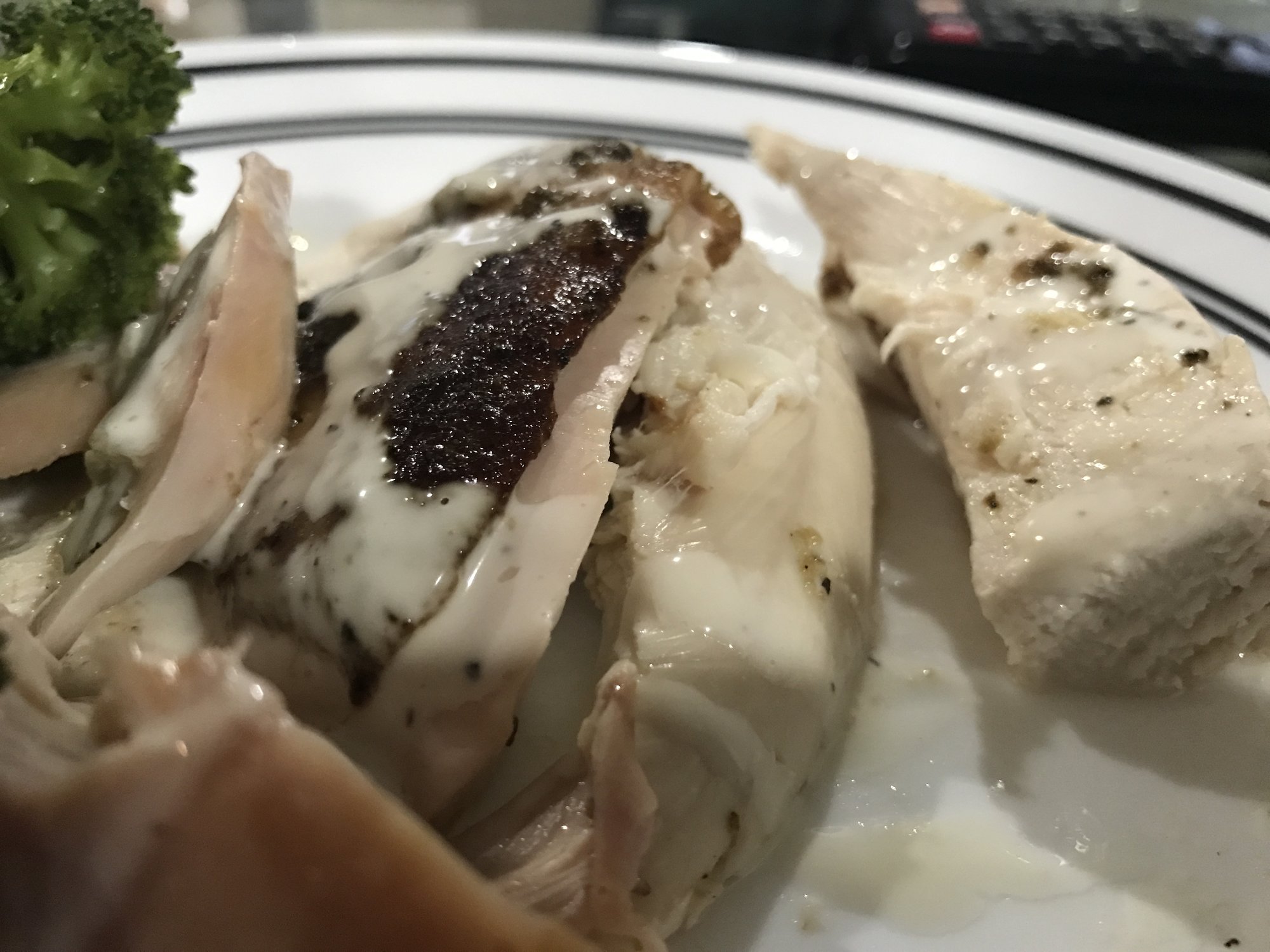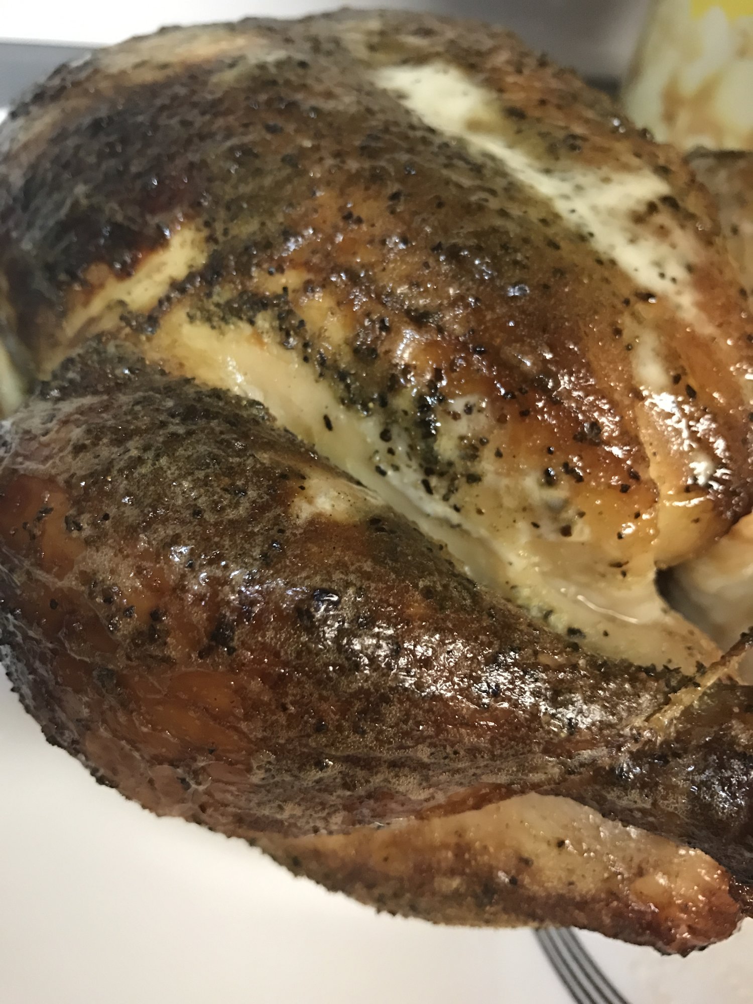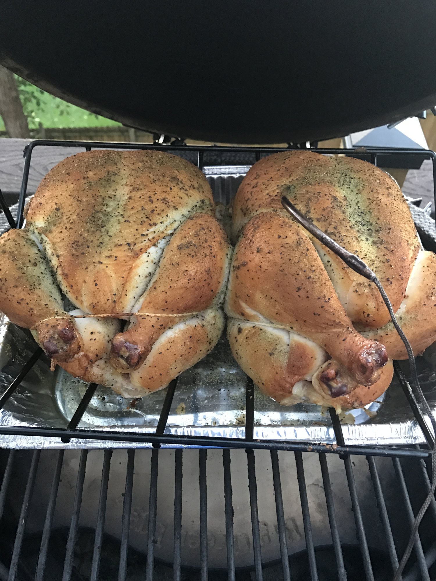 Not my best picture. But it was the best chickens I have made so far. Smoked indirect at 350. Used big bob Gibson sauce on it.