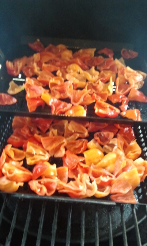 I smoked a bunch of cayennes at 250 and was surprised how long the whole pepper took to dry down. Probably 6+ hrs total with some stirring involved.