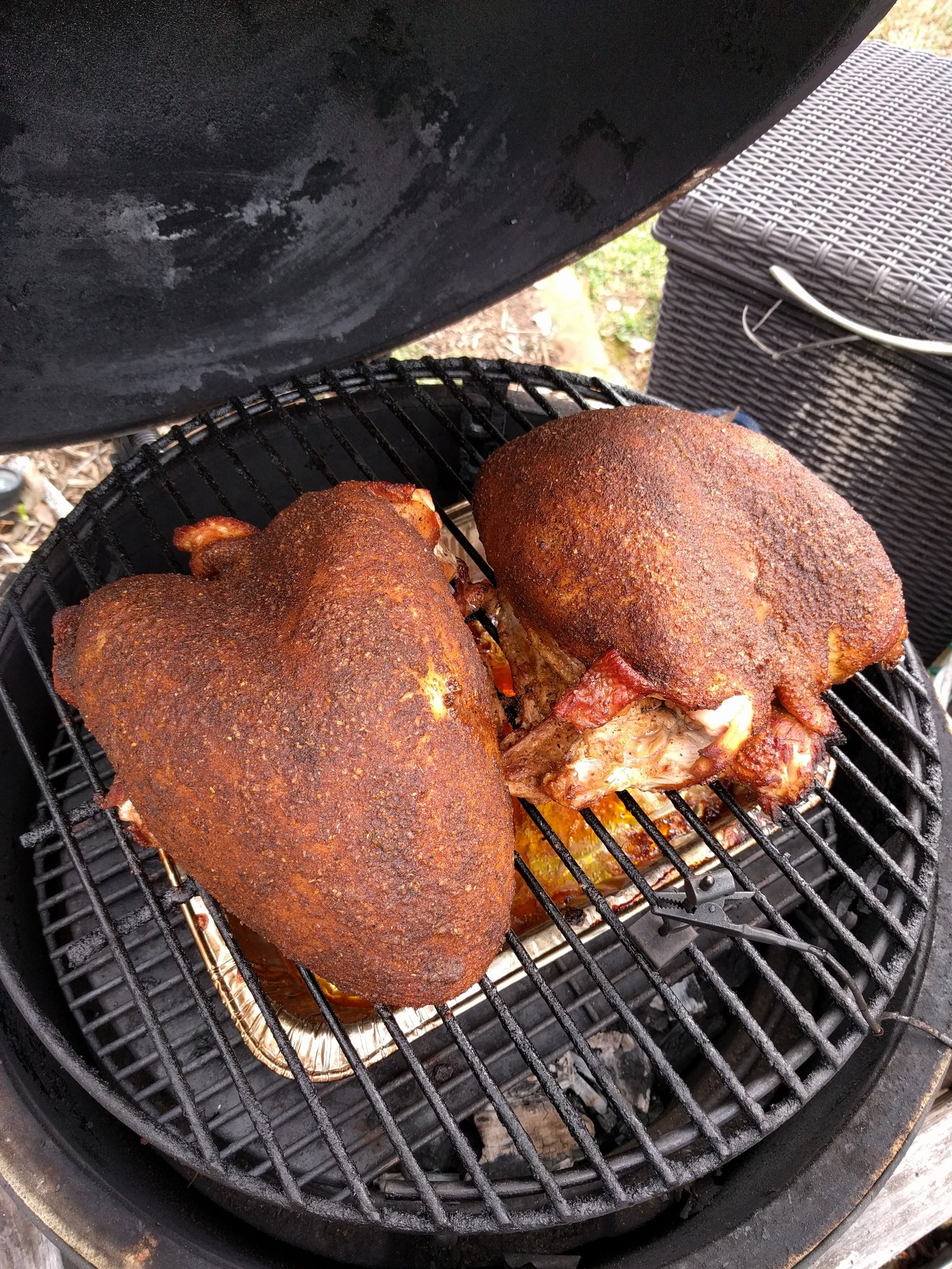 Went heavy on the pecan smoke this time and was pleased with the results. I did brine these overnight. I don't remember if they were injected or "pre-brined", I forgot to check. #1 LBGE December 2012 • #2 SBGE February 2013 • #3 Mini May 2013A happy BGE family in Houston, TX. -