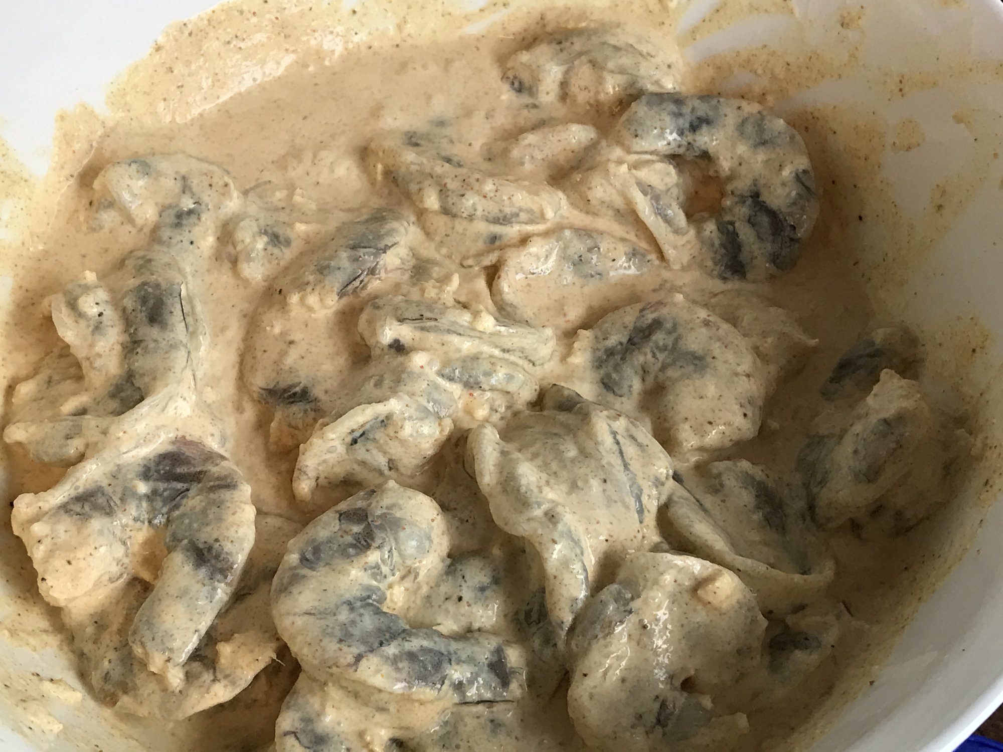 @JustineCaseyFeldown the marinade has ginger, garlic, lemon juice, heavy cream, Gram Marsala, cayenne, cumin, white pepper, and salt.LBGE & SBGE. Central Texas.