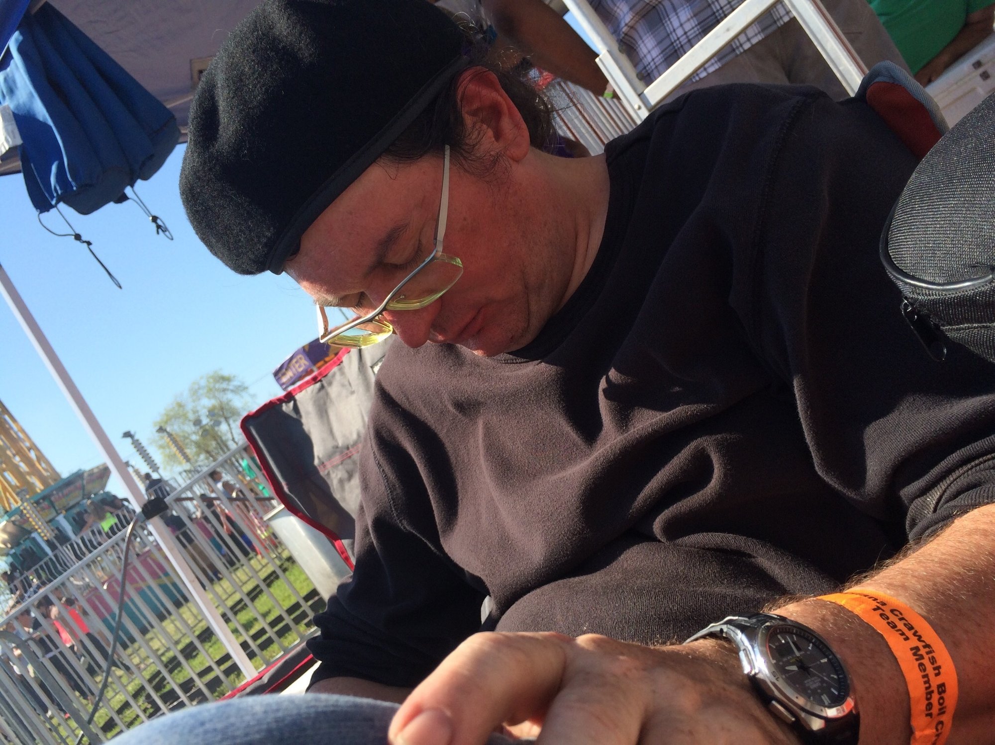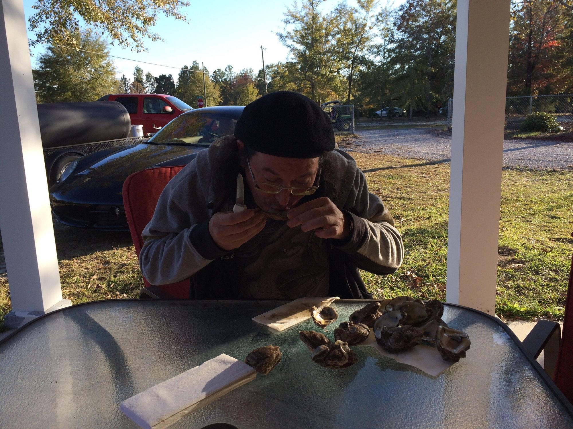 The hippy trying to keep up with me eating oysters. It wasn't even close.