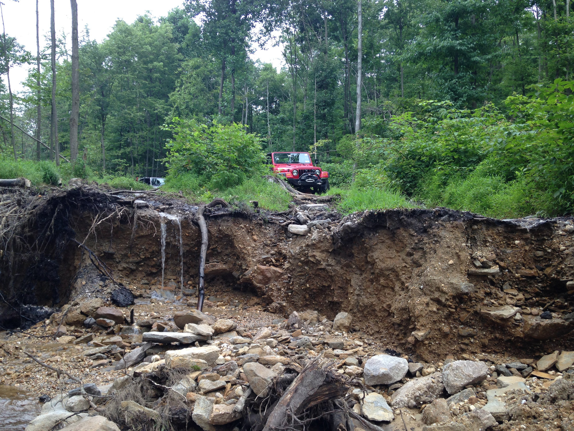 The park got probably 20 inches of rain in the week leading up to this trip & I was there the first sunny day following the deluge & it cut some serious new obstacles in the existing trails, this 'was' a basic green trail that just disappeared on us, took some doing to get around this:
