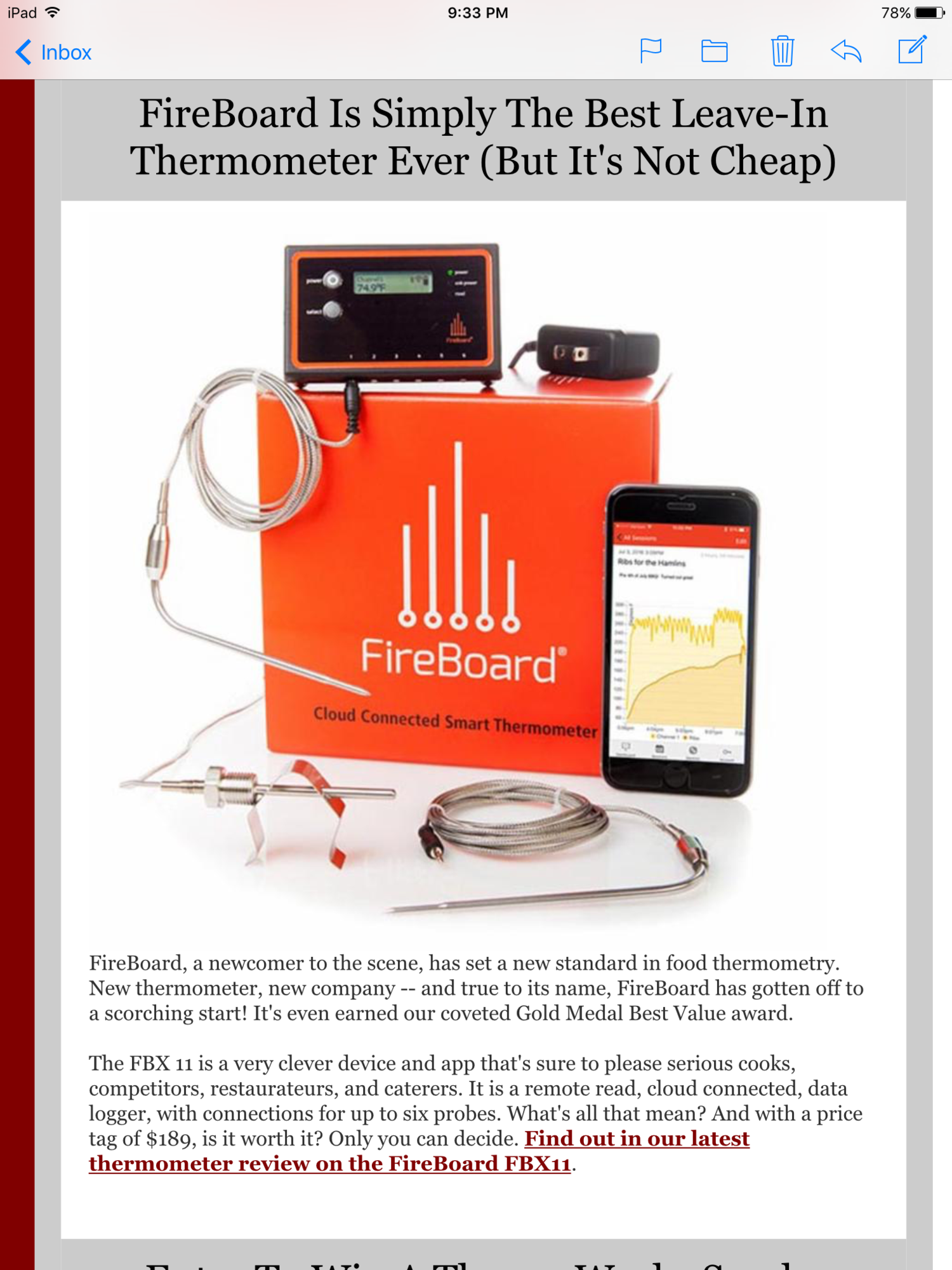 Thanks, @HeavyG .HeavyG said:I was a Kickstarter backer and I've had my FireBoard for about a month now. It's very slick. The probes are good quality and waterproof.
