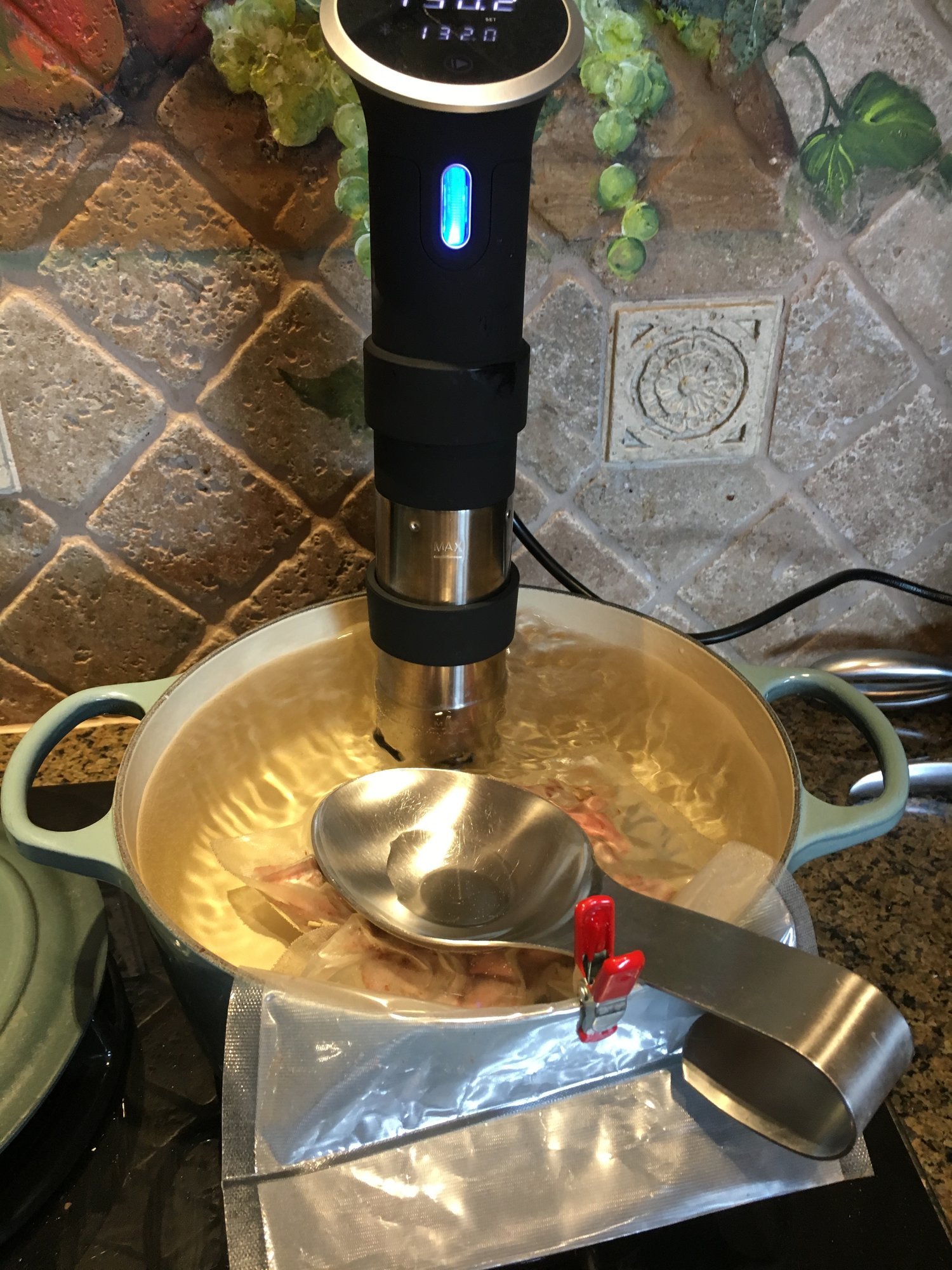 Today, I made a batch of the Au Jus, sliced up the meat  and reheated it using my new Sous Vide machine.