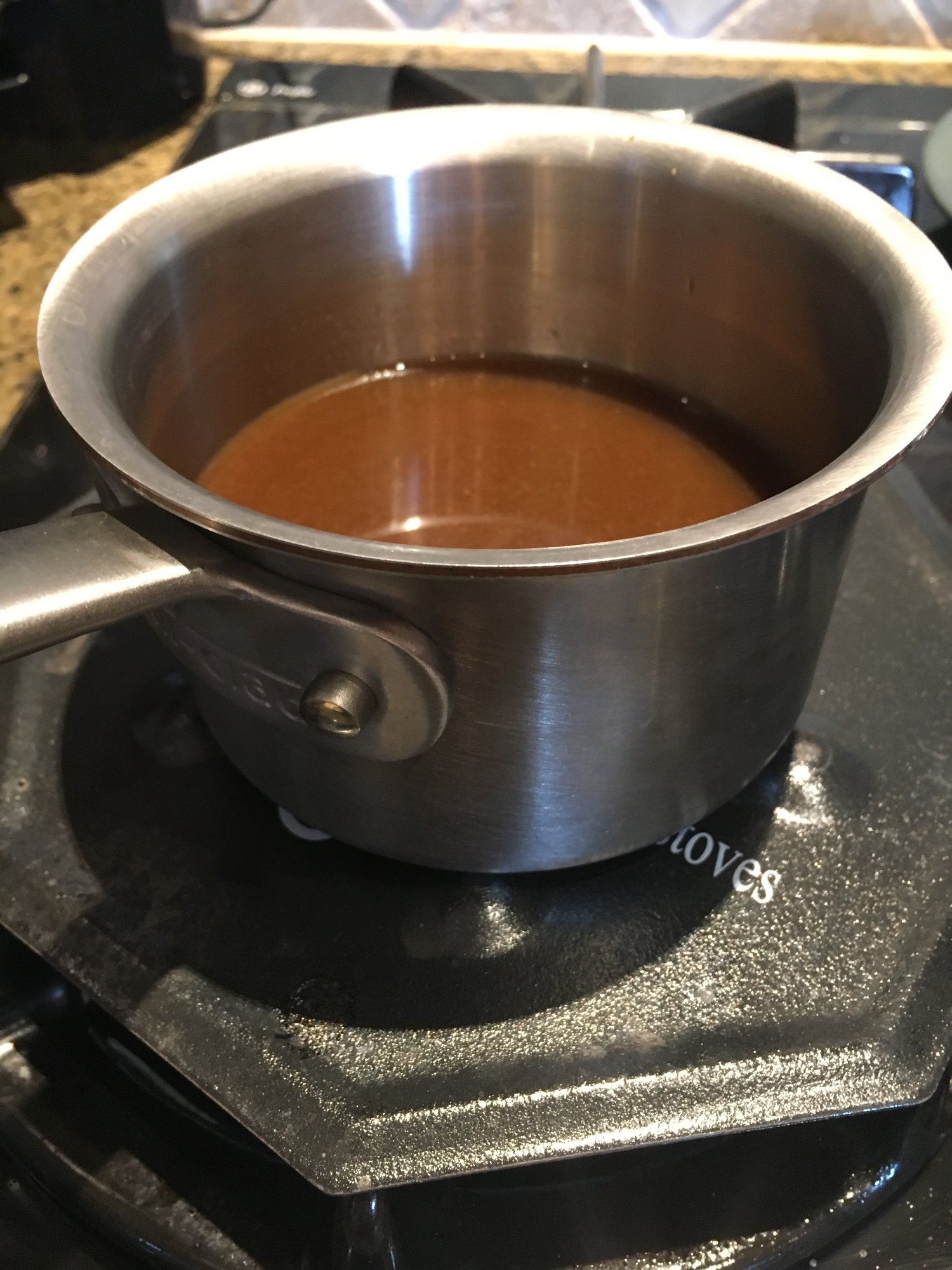 Bring ingredients to a boil in saucepan, letting it boil for 1 minute then