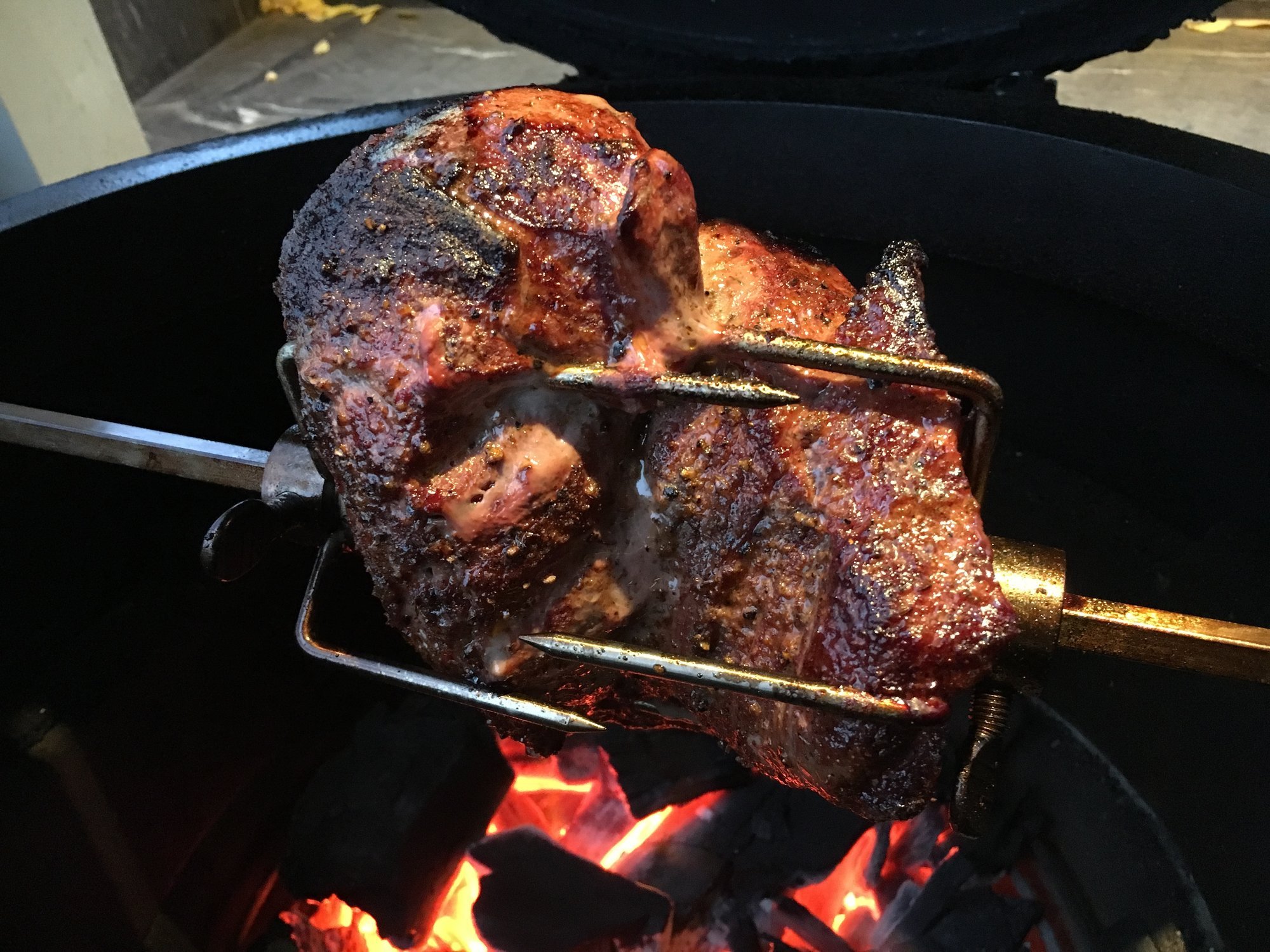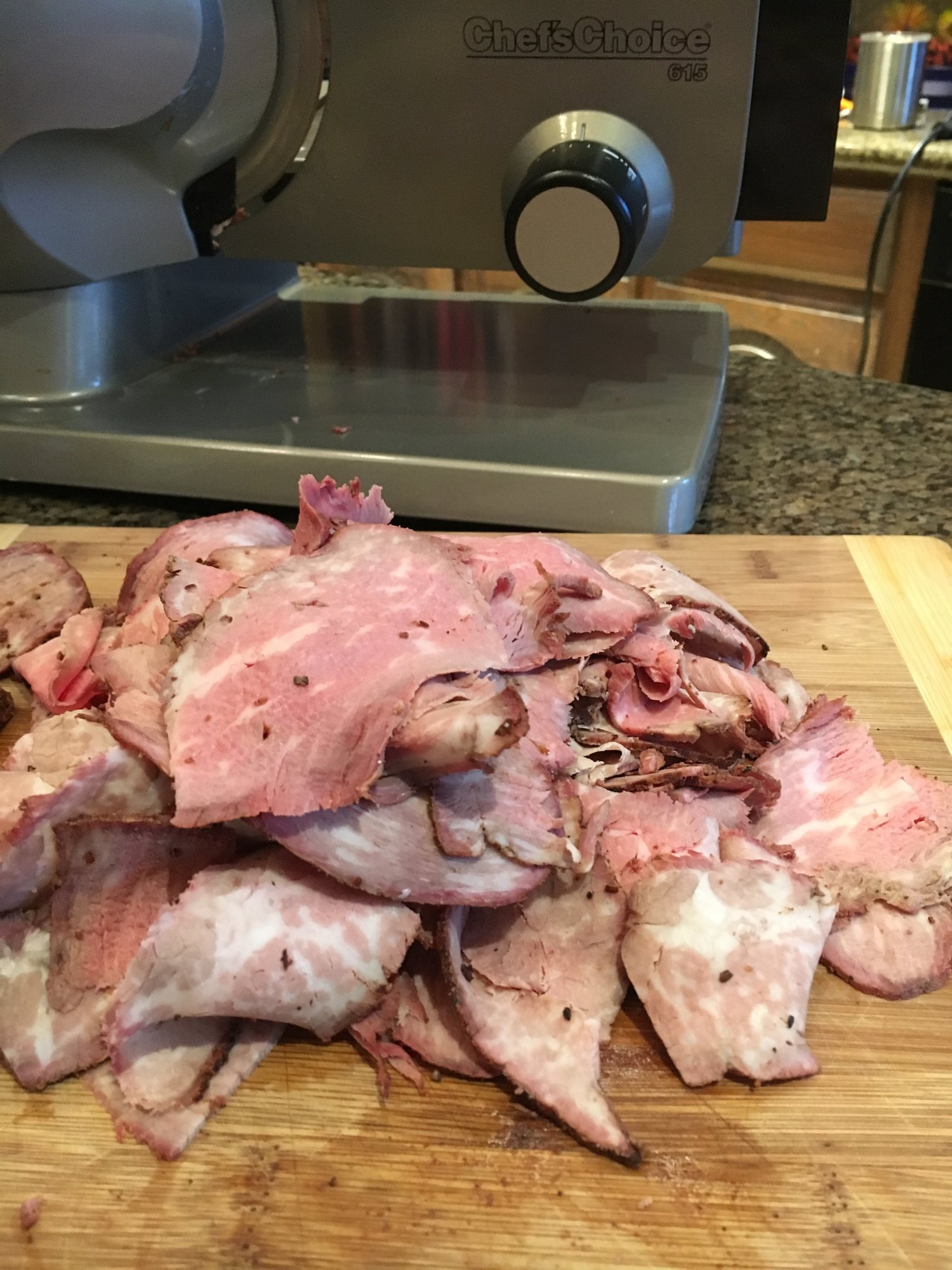 I did a Tri-tip on the Joetisserie yesterday, while it was reaching 70 degrees.  Knowing that it would drop into the teens today, I let it rest and put it in the fridge.
