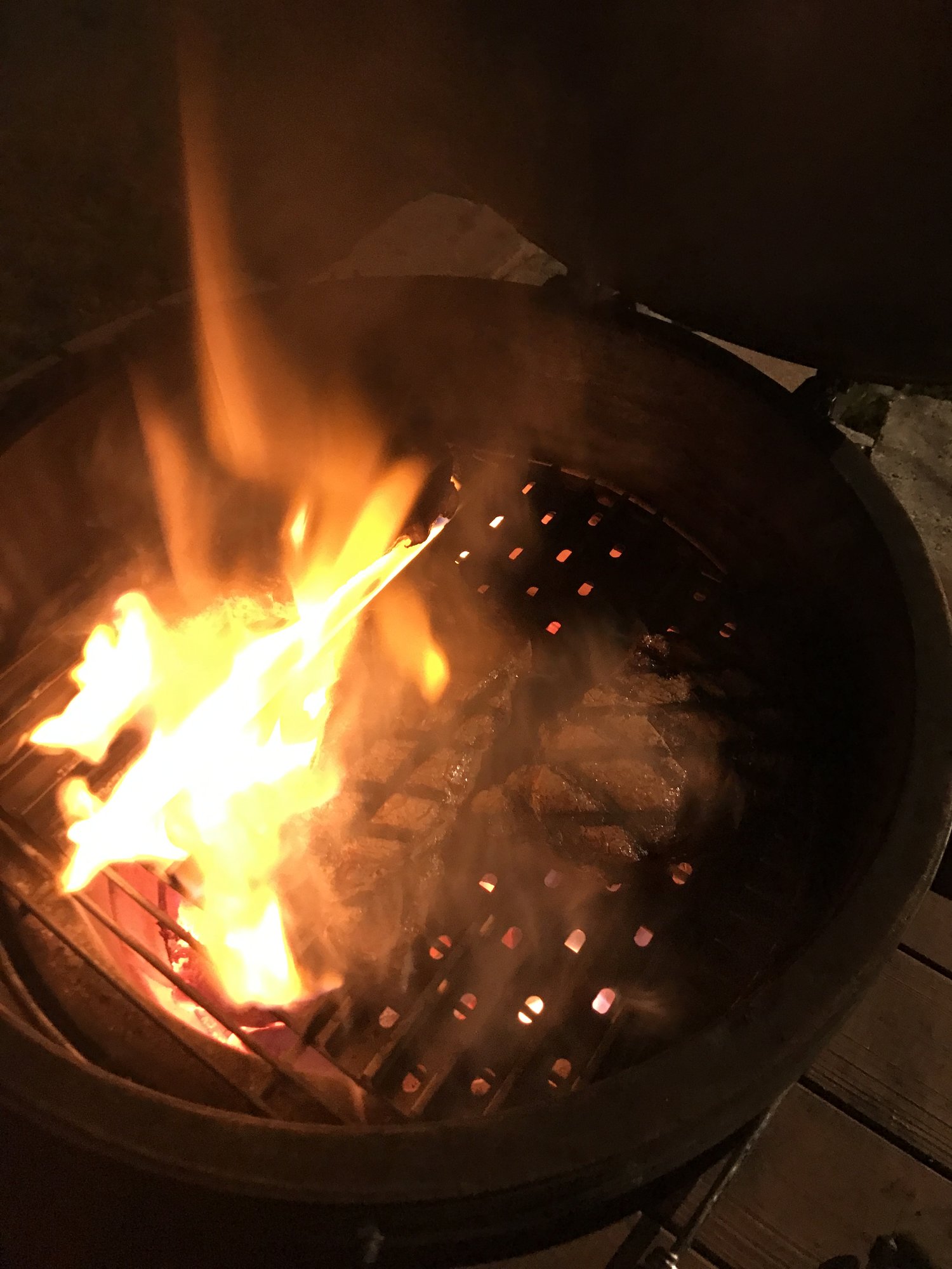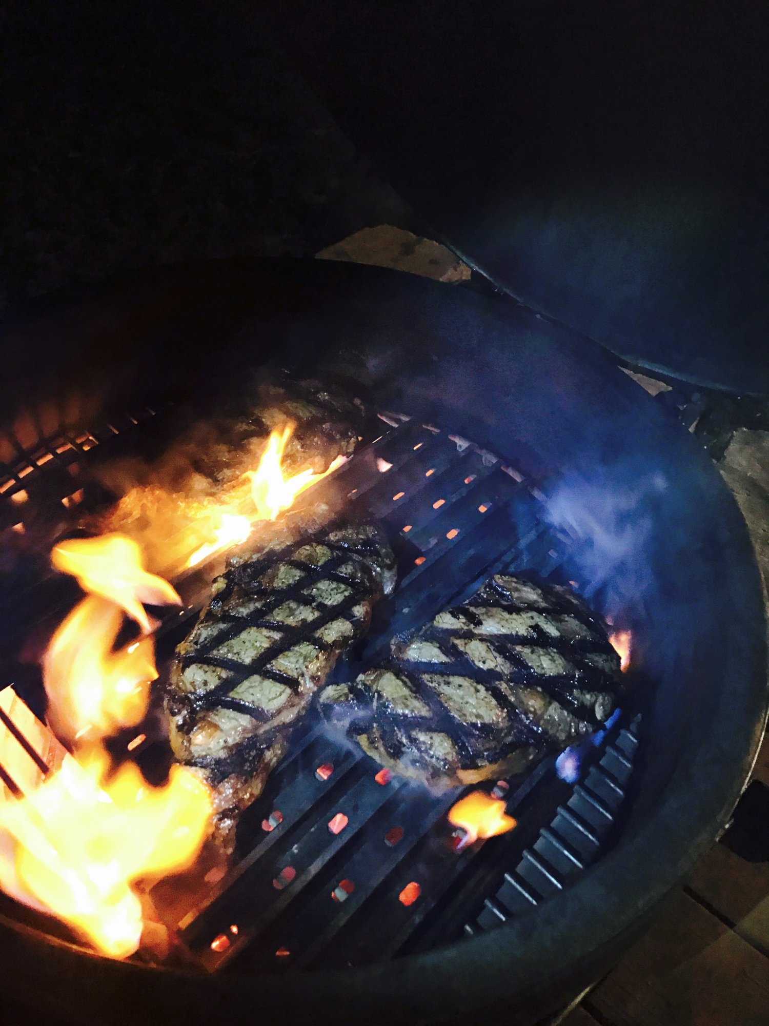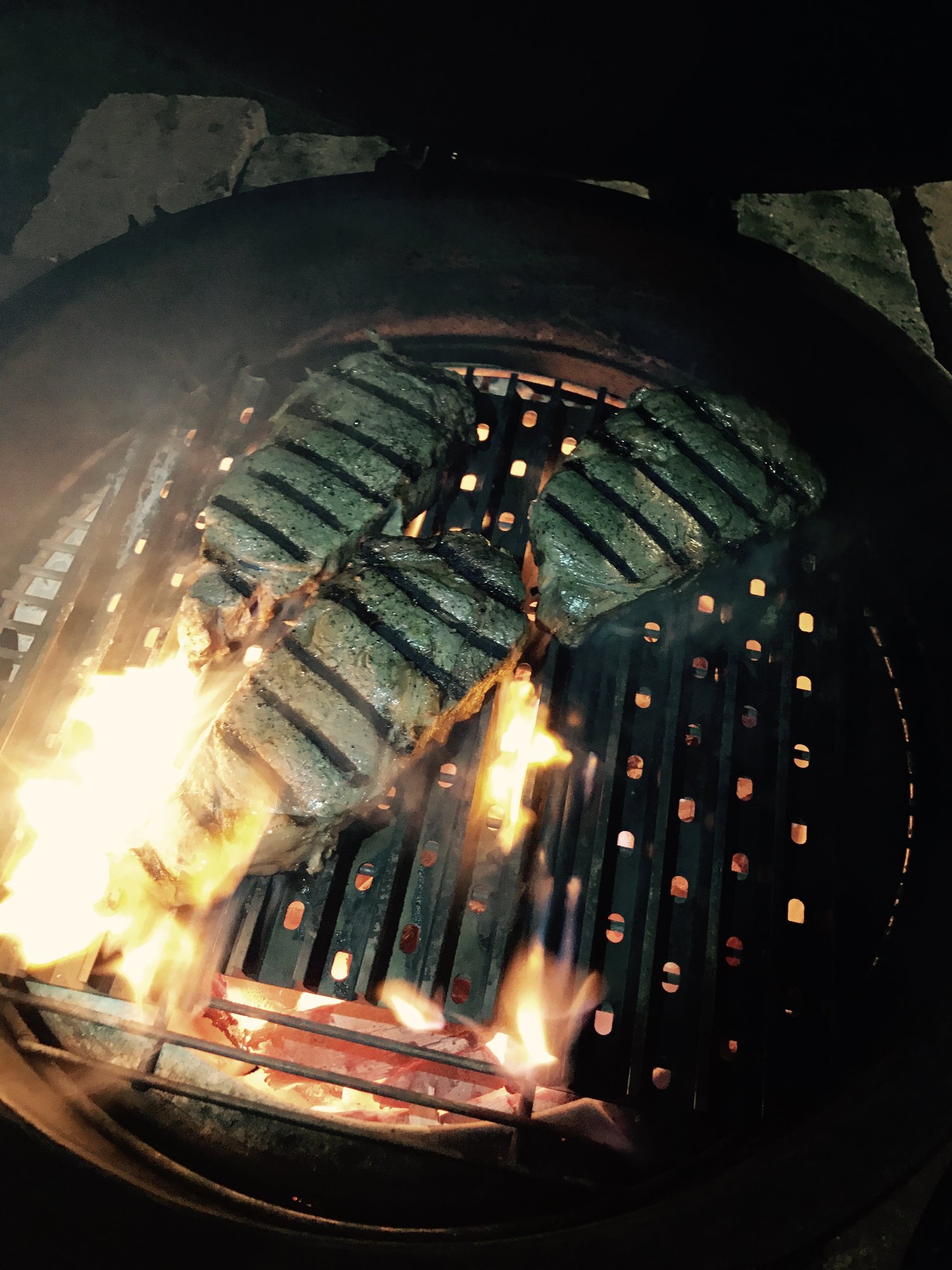 Perfectly rare. Cool red center. I know, I know. Look scorched but they weren't.BGE L, Minimax, iGrill 2, Kick Ash Basket, CGS AR, various and sundry overpriced accessories...
